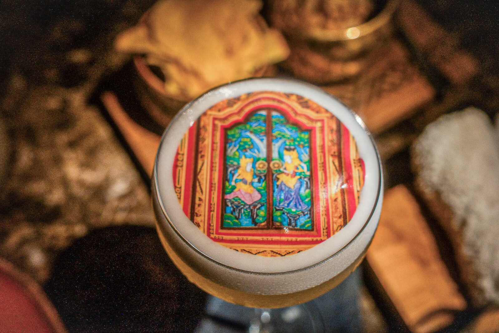 サンセットは「アンバー・ウブド・バー」へ。バリのハーブを使ったカクテルが名物で、特にカラーシュガーで描かれた伝統肖像画が浮かぶ一杯は芸術的。ジャズの音色と黄金色の夕景に酔いしれる時間が広がる。