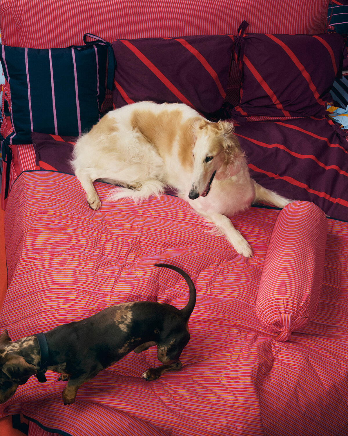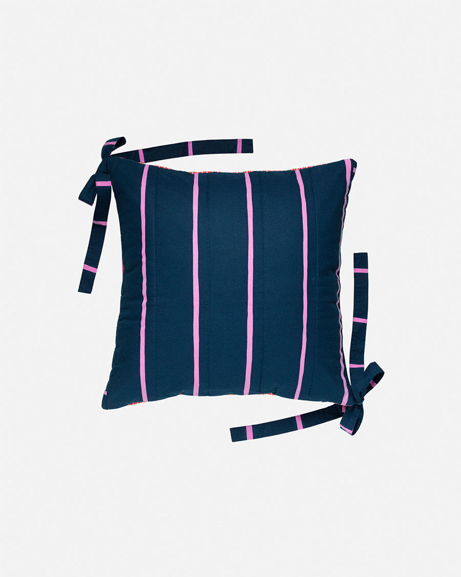 今回はマリメッコのためにレイラが大胆なマリメッコの色彩と、マリメッコの伝説的なデザイナー、マイヤ・イソラのアーカイブストライプを組み合わせたベッドルームアイテムのカプセルコレクションをキュレーションした。