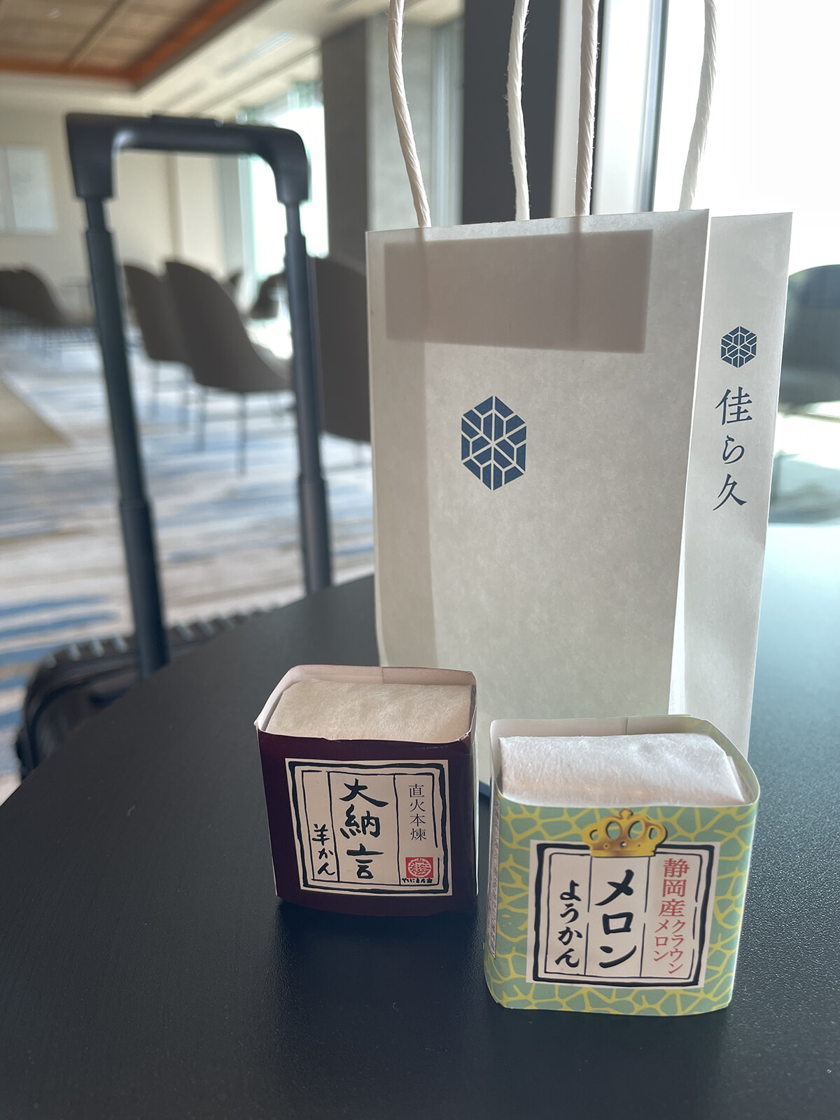 名残惜しい気持ちでチェックアウト。スタッフの方から手渡された紙袋の中には一口羊羹が。甘やかし時間の最後を締めくくってくれたのも甘味という、我ながらコンプリート感もひとしおな旅となりました。