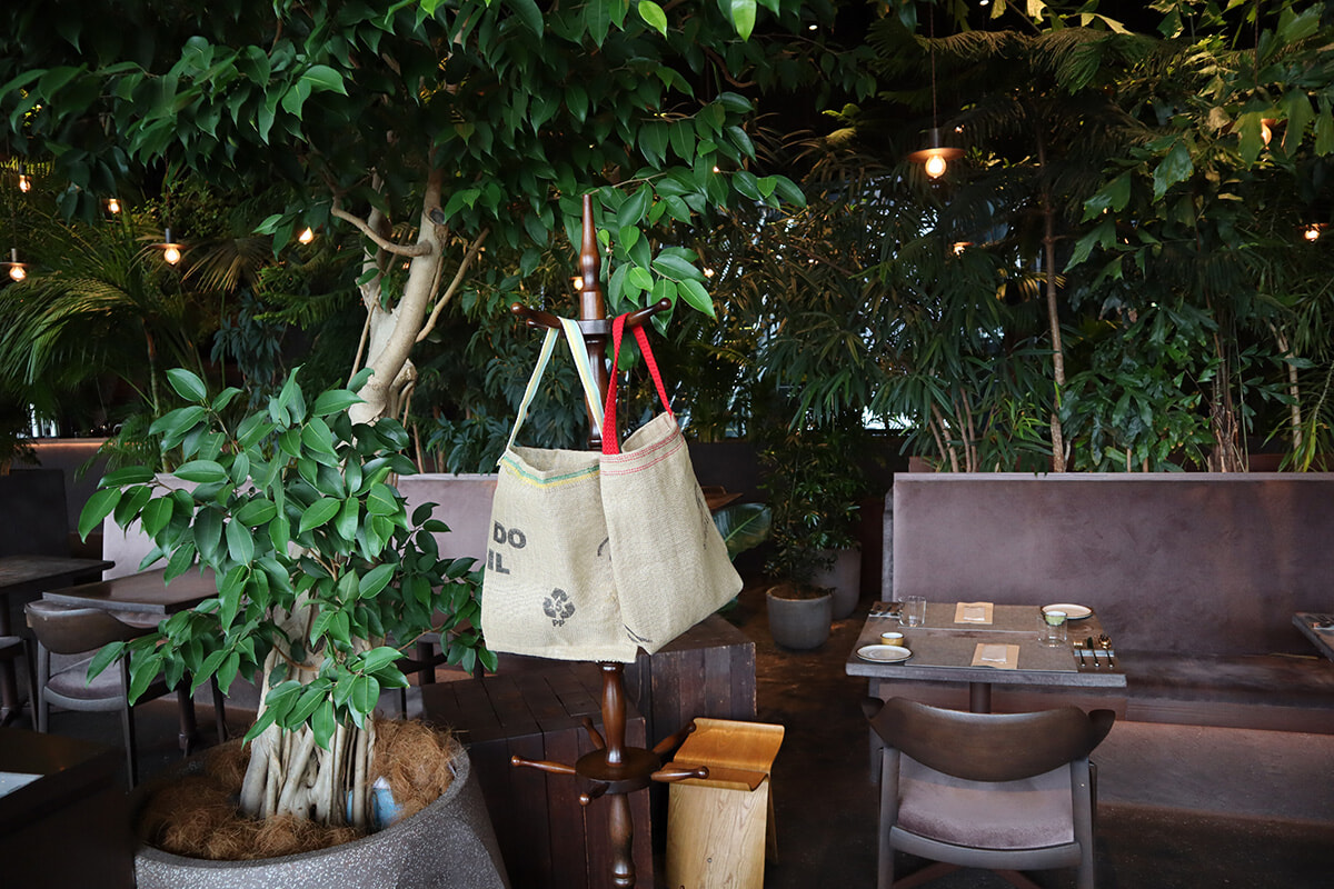 子ども向け料理教室で仕上げるエコバッグは、uni sendagaya(ユニ センダガヤ)で出るコーヒー豆の麻袋をアップサイクルしたもの。