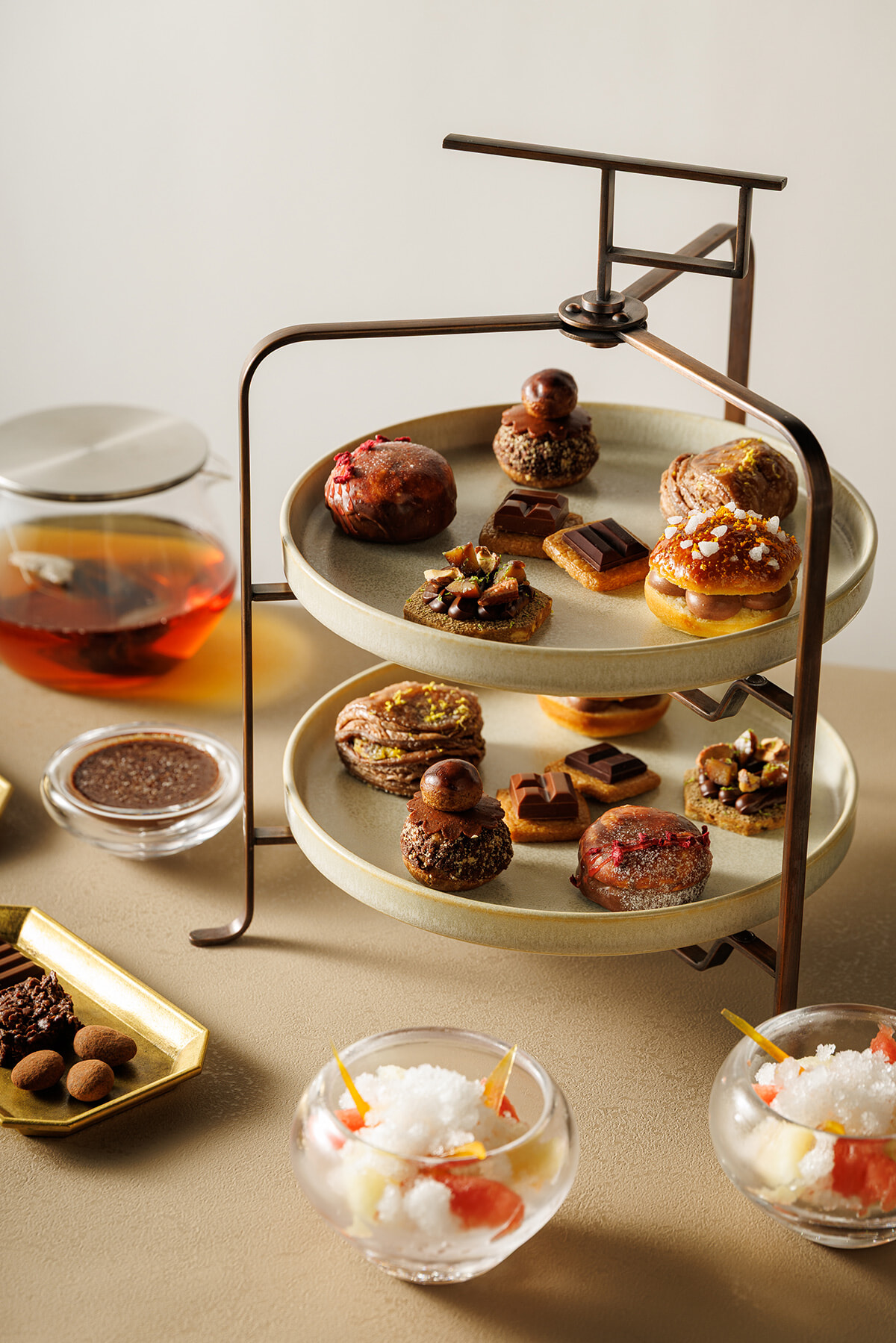 パリ発のショコラ専門店、ル・ショコラ・アラン・デュカスが日本橋の東京工房に併設するデザートサロン、ル・サロン。同サロンにて大好評のアフタヌーンティー「ル・グテ」から、秋冬バージョンが登場。南仏で親しまれている「トロペジェンヌ」やリヨン発祥の「ビション」など、フランス伝統菓子を独自の世界観で表現したショコラ尽くしのスイーツをラインナップする。そのほか、姉妹ブランドであるル・ビスキュイ・アラン・デュカスで人気の「カレ・ピュール・ブール」や、秋冬にぴったりのマロンビスケット「ビスキュイ・フレ・マロン&ショコラ」も。この季節になるといっそう恋しくなるショコラを、専門店ならではの洗練された味わいで思う存分堪能したい。