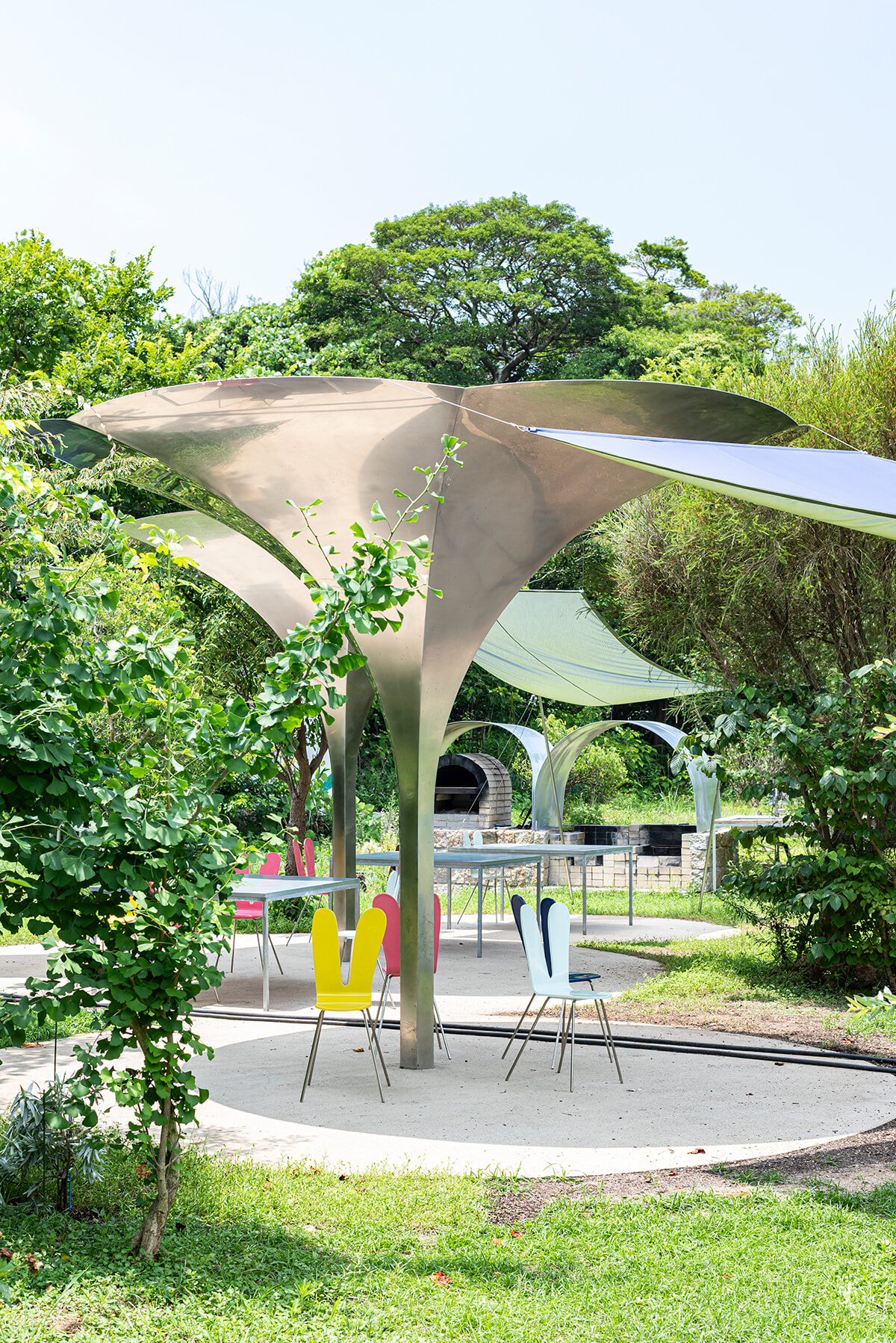 犬島 くらしの植物園 自然に囲まれ、花のようなパビリオンでひと休み。 photography: Kenta Kawagoe