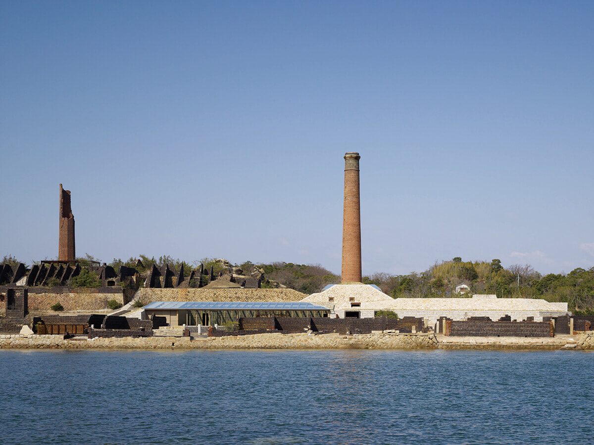 小さいけれど凝縮された「アートの島」犬島。2008年に開館したこの島で最初の施設、犬島精錬所美術館を瀬戸内海から望む。 犬島精錬所美術館 アート:柳幸典 建築:三分一博志 photography:Daici Ano