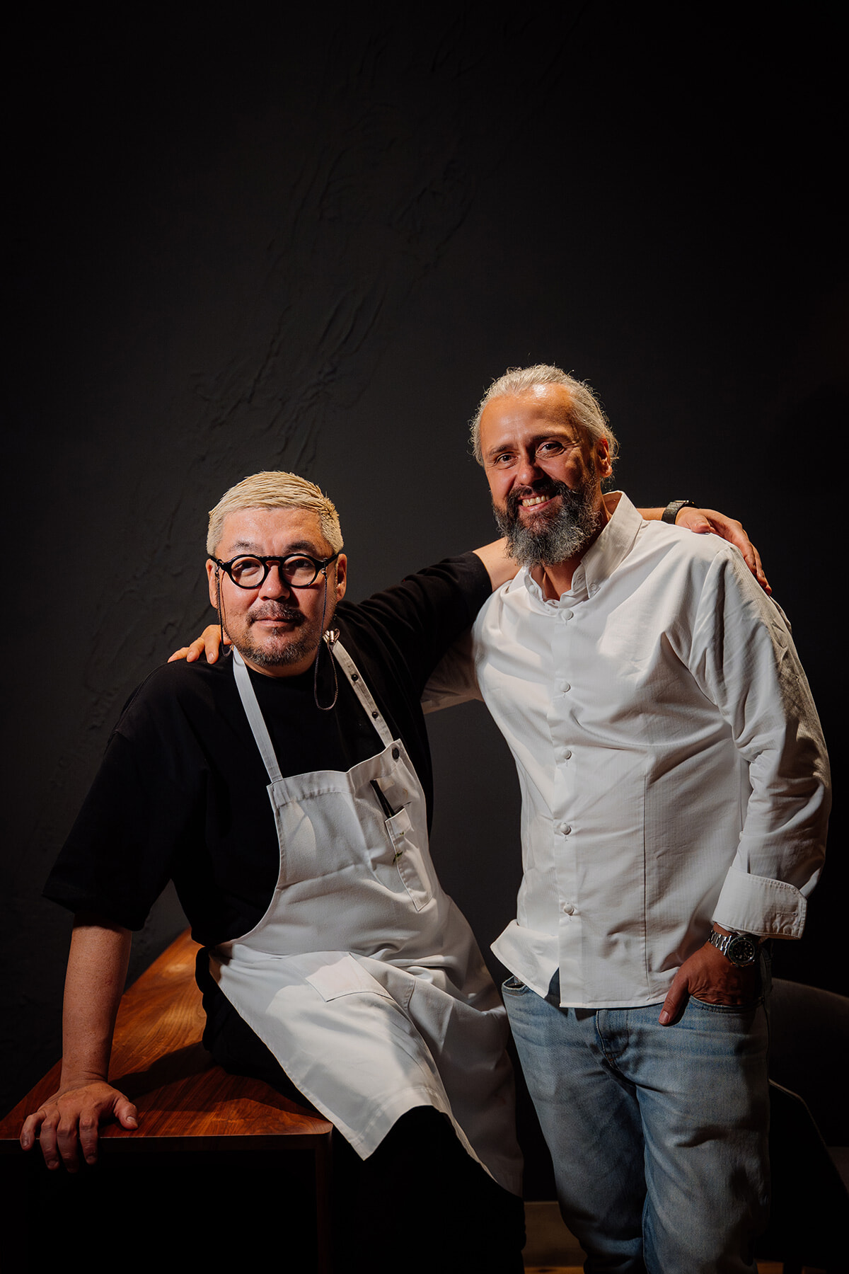 初めて競演したふたりのスターシェフ。左から、ラシームの高田シェフ、ミシュランの星を持つノリータのグロホヴィナシェフ。