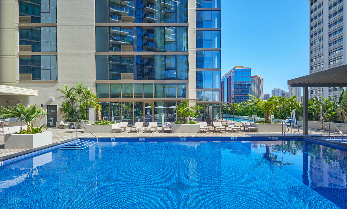 空港から車で約15分で到着でき、買い物もレストランも充実したエリアに建つので、とにかく便利。リピーターや家族旅行ならレジデンスで長期滞在、も快適だ。モダンな最新ホテルで、再びのハワイを満喫して!