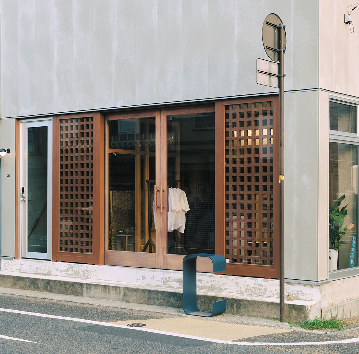 ビルの格子状の壁を、そのまま生かしたファサード。