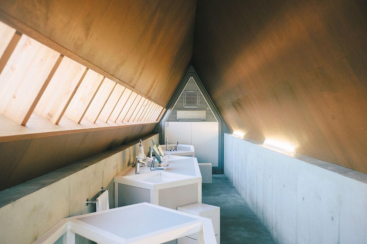美術家と建築家が協働で宿泊型アート建築を創るA&Aプロジェクトの第1弾として2019年に誕生。ベルリンを拠点とする現代美術家のジョナサン・モンクと建築家の長谷川豪がタッグを組んだ1日1組限定の家は、大階段を主役に様相の異なる3つの空間を行き来できる。アート空間に時を忘れて浸りたい。