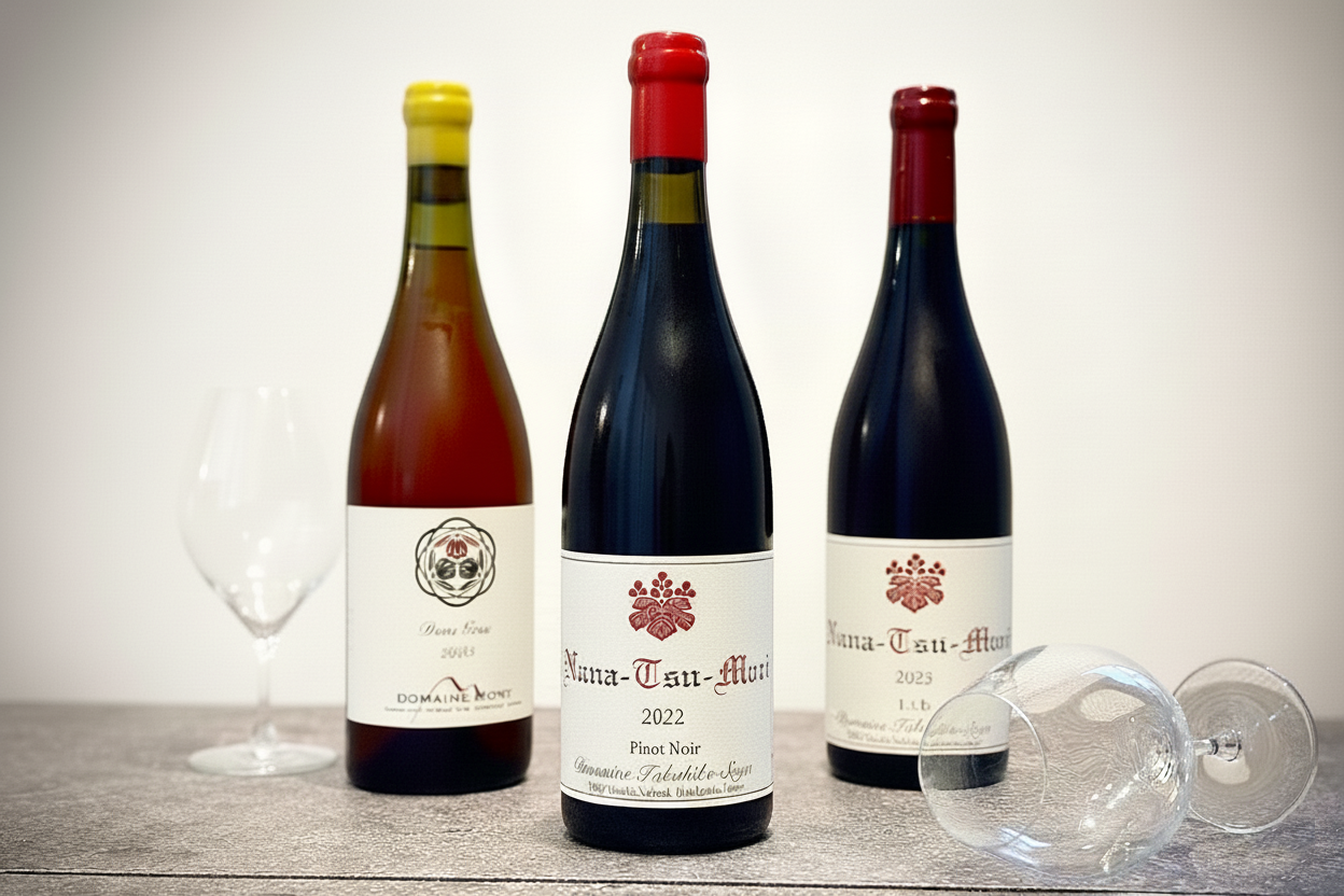 ※ドメーヌ・タカヒコ ナナツモリ・ピノ・ノワール、ドメーヌ・タカヒコ ナナツモリ・オー・リー、ドメーヌ・モン ドングリ各70mlの試飲つき