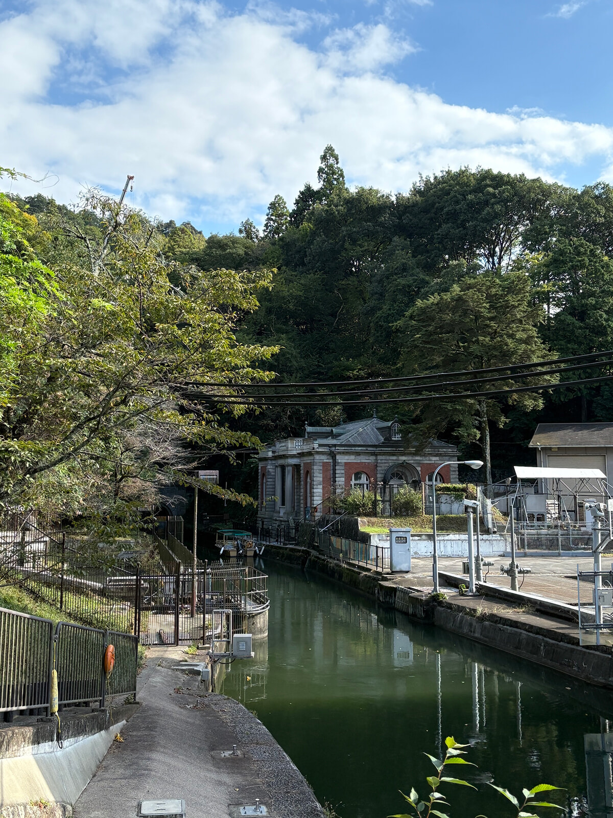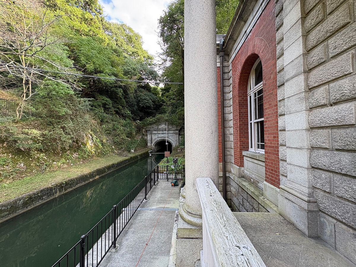 疏水のほとりに優美に佇む「旧御所水道ポンプ室」
