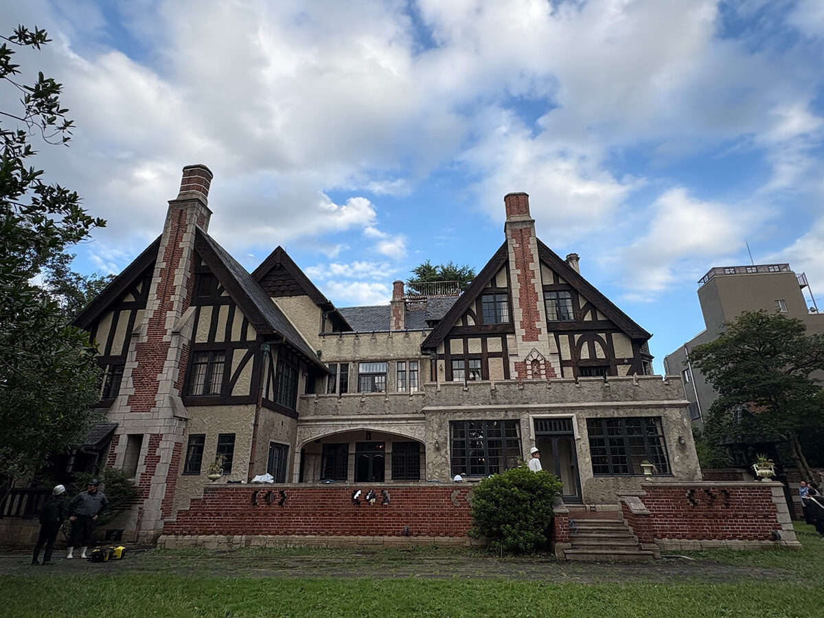 数えきれないほど前を通り過ぎてきたのに、初めて足を踏み入れて感動したのがこちら――「大丸ヴィラ」。大丸初代社長・下村正太郎氏の邸宅として、昭和7(1932)年にウィリアム・メレル・ヴォーリズ建築事務所の設計で建てられました。「木をむき出しにしたハーフティンバーやレンガ装飾など、イギリス中世のチューダー様式が特徴です。ロンドンのリバティ百貨店をモデルにしたとも言われています」と笠原先生。建物の裏手にまわり、広々とした庭から全体を眺めると、まるでイギリスの田園地帯にいるような気分に。中に入ると、時代をそのまま閉じ込めたような重厚な内装が残っていて、細部まで見応えたっぷり。烏丸丸太町の交差点近くに、これほどの敷地と建築がいまも残っていること自体が奇跡のよう。これからも大切に受け継がれてほしい、京都の名建築のひとつです。