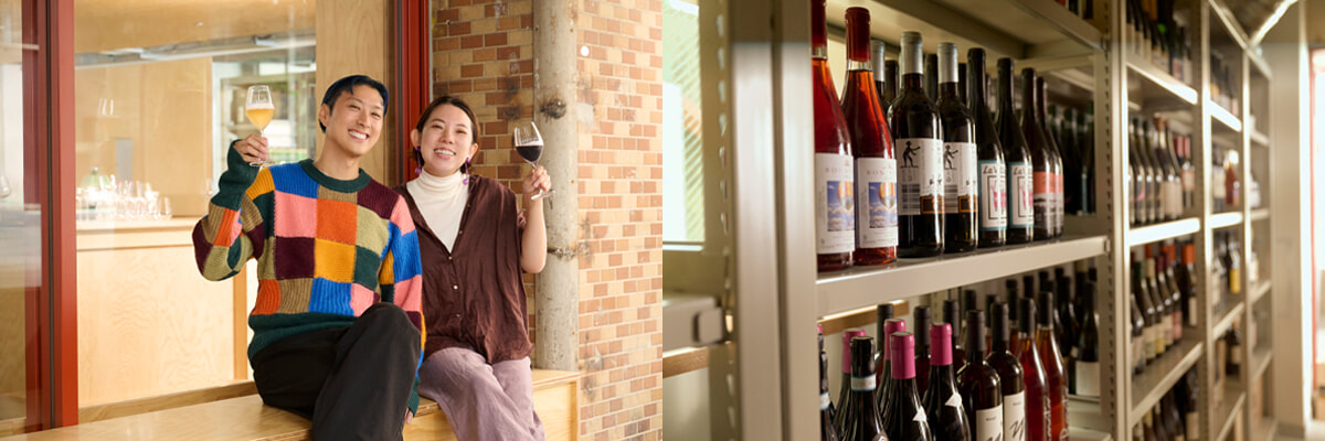 ナチュラルワインのケータリングプロダクションとして活動してきた「hebeerryk! wineshop」初のリアル店舗。ファウンダーの近藤太郎(左写真左)は三軒茶屋と下北沢の「Però」、戸梶由衣(左写真右)は学芸大学の「Ri.carica」と、ともにワイン好きなら誰もが推す実力店出身なだけに、地元客に加えて”ヘベレケファン”も駆けつけること間違いなし!ボトルがぎっしりと並べられたワインセラーには約1000本がスタンバイし、3000円台から数万円までの幅広い価格帯で揃えている。ラインナップはイタリア産をメインに、日本のワイナリーからの買い付けも。