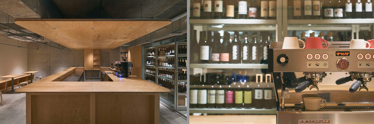 ペットフレンドリー、ベビーフレンドリーというのもこの界隈では嬉しいポイント。店内の中央には大きなカウンターを挟んで右側にワインセラー、左側にテーブル席が配されているほか、外壁沿いにはベンチもあり、思い思いのスタイルでくつろげるのが魅力。昼間は、キャットストリートに1号店を構えるカフェ「Sedai Coffee」こだわりのスペシャルティコーヒーや、清澄白河の人気ベーカリー「パンのイデリオ」からセレクトしたフードが楽しめる。