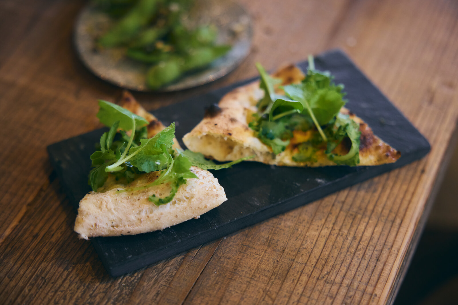 同時に、ゴーヤとグリーンリーフを乗せたピザが運ばれてくる。