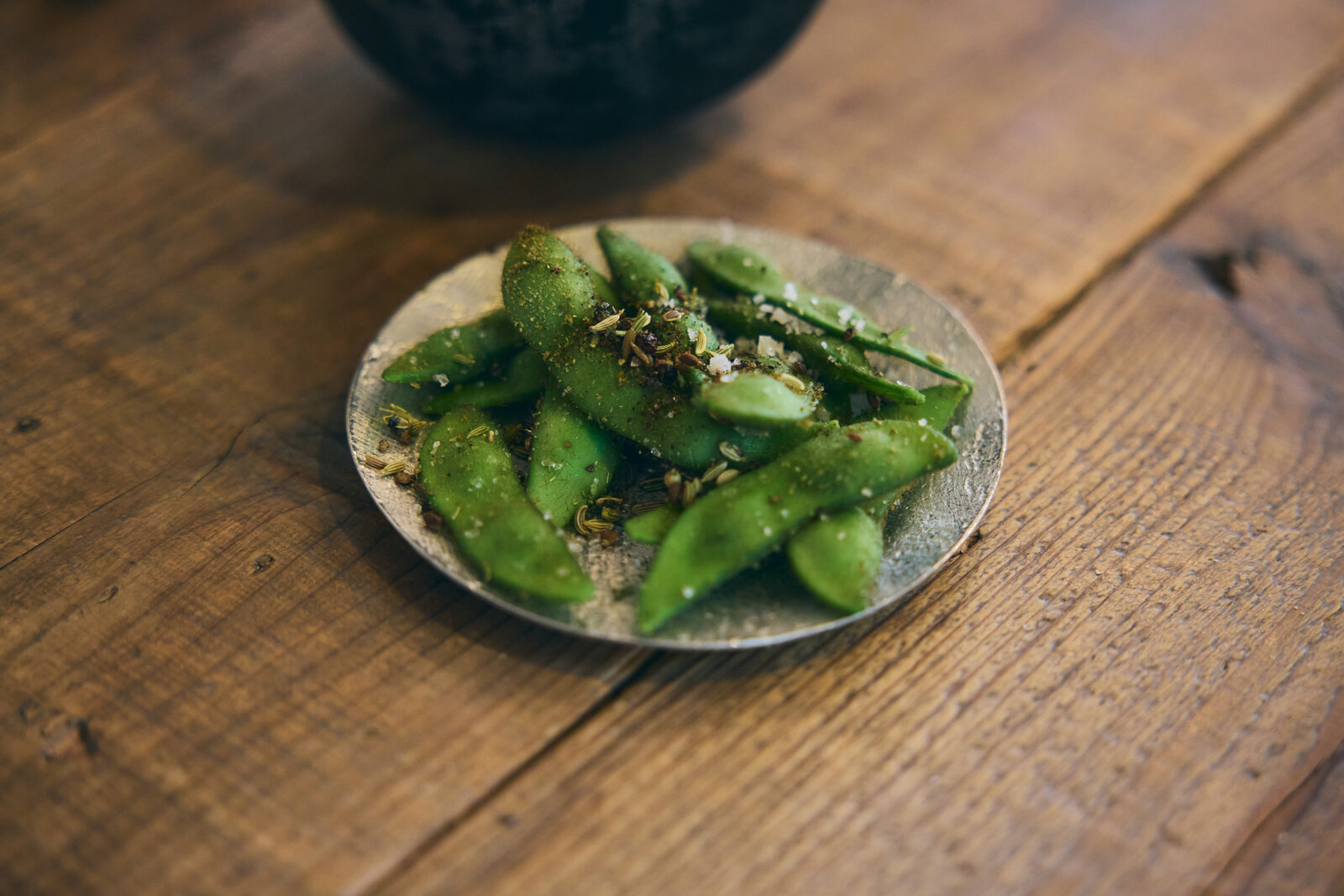 乾杯とともにまず提供されたのは、なんと枝豆。当初メニューに入れる予定はなかったものの、小林シェフが裏の畑でちょうど収穫時期を迎えていたのを見て急遽付け加えたひと品だ。