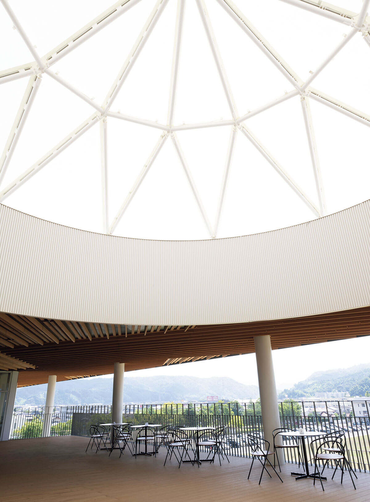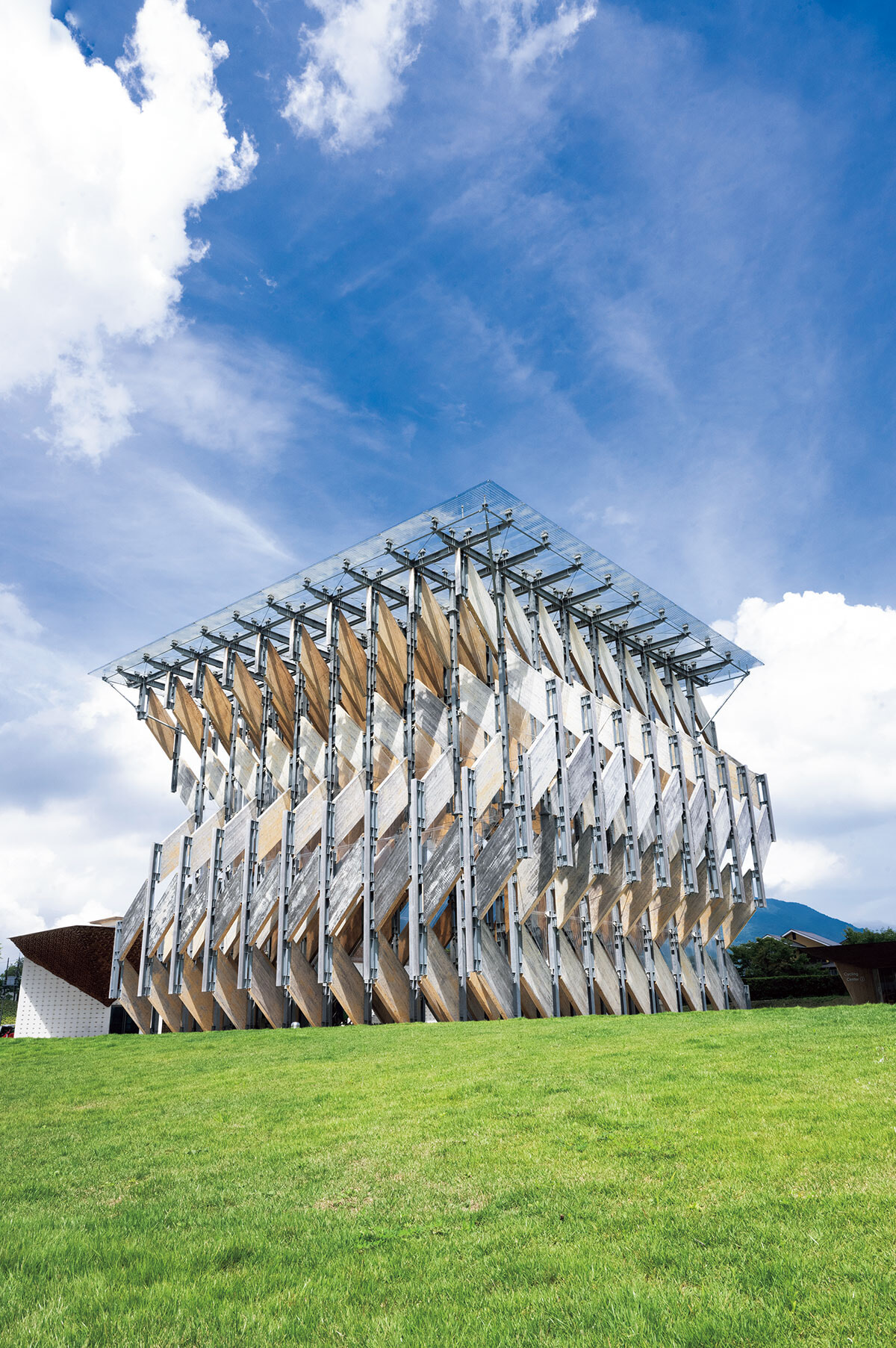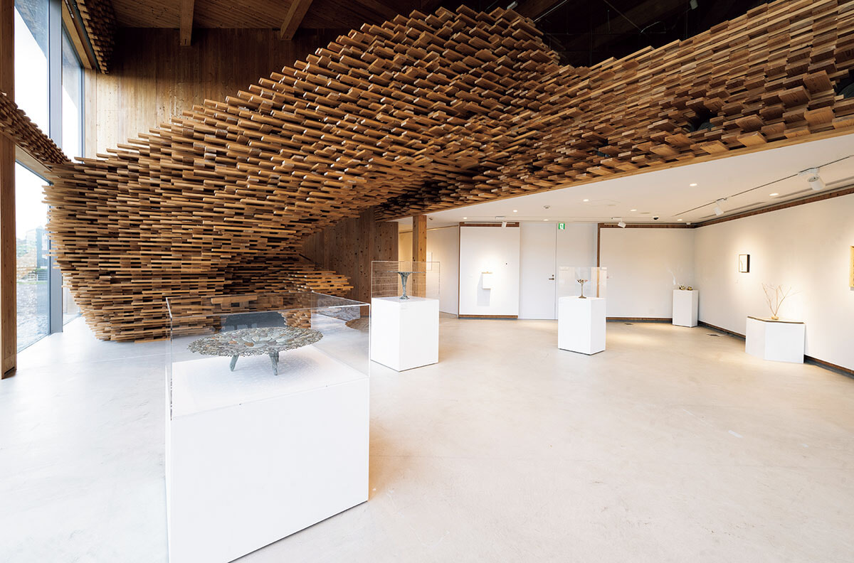 蒜山高原といえば中国地方を代表する避暑地。自然あふれるこの地に、パビリオンやミュージアムなどを擁する施設が登場した。SDGs未来都市認定を受ける真庭市が舵を取り、地元のヒノキやスギを使って隈研吾が設計。パビリオン「風の葉」に入ると風が吹き抜け、ファサードのパネルがはためき、森林の中で葉が舞い上がるような錯覚に。ミュージアムでは年3回ほど展示が入れ替わり、いずれも自然モチーフの作品が並ぶ。自然と一体化した建築とサステナビリティを体感できる、新時代の文化発信地といえる。