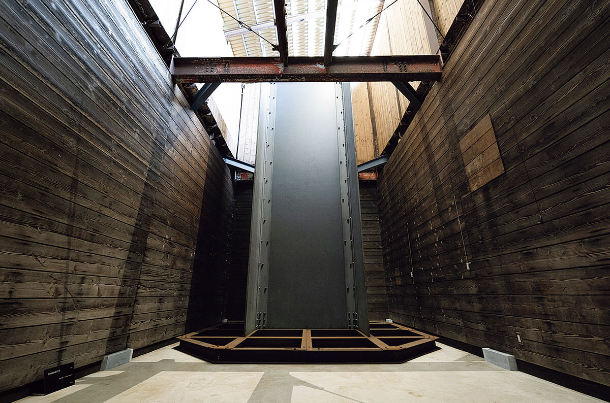 1952年に割り箸メーカーとして創業した倉吉の老舗企業が木材チップの倉庫をギャラリーに改装。空間を存分に活用し常設されるのは、”もの派”を代表するアーティスト原口典之の壮大な作品『Oil and Water』。プール状の型には、かたや廃油が、もう一方には水が張られ、油と水の対比を見せている。開館から1年強ながらすでに7回の企画展を実施し、そのほとんどが若手アーティストの育成に向けたもの。若手には無償で場を貸し出し、活躍の場所を提供。倉吉のアートシティ化にも一役買っている。