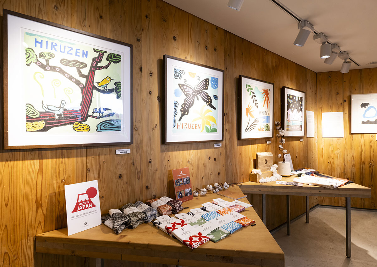 館内のショップでは、蒜山の四季をモチーフにした版画のほか、サステナ視点でセレクトした食品、ウエア、日用品を販売する。