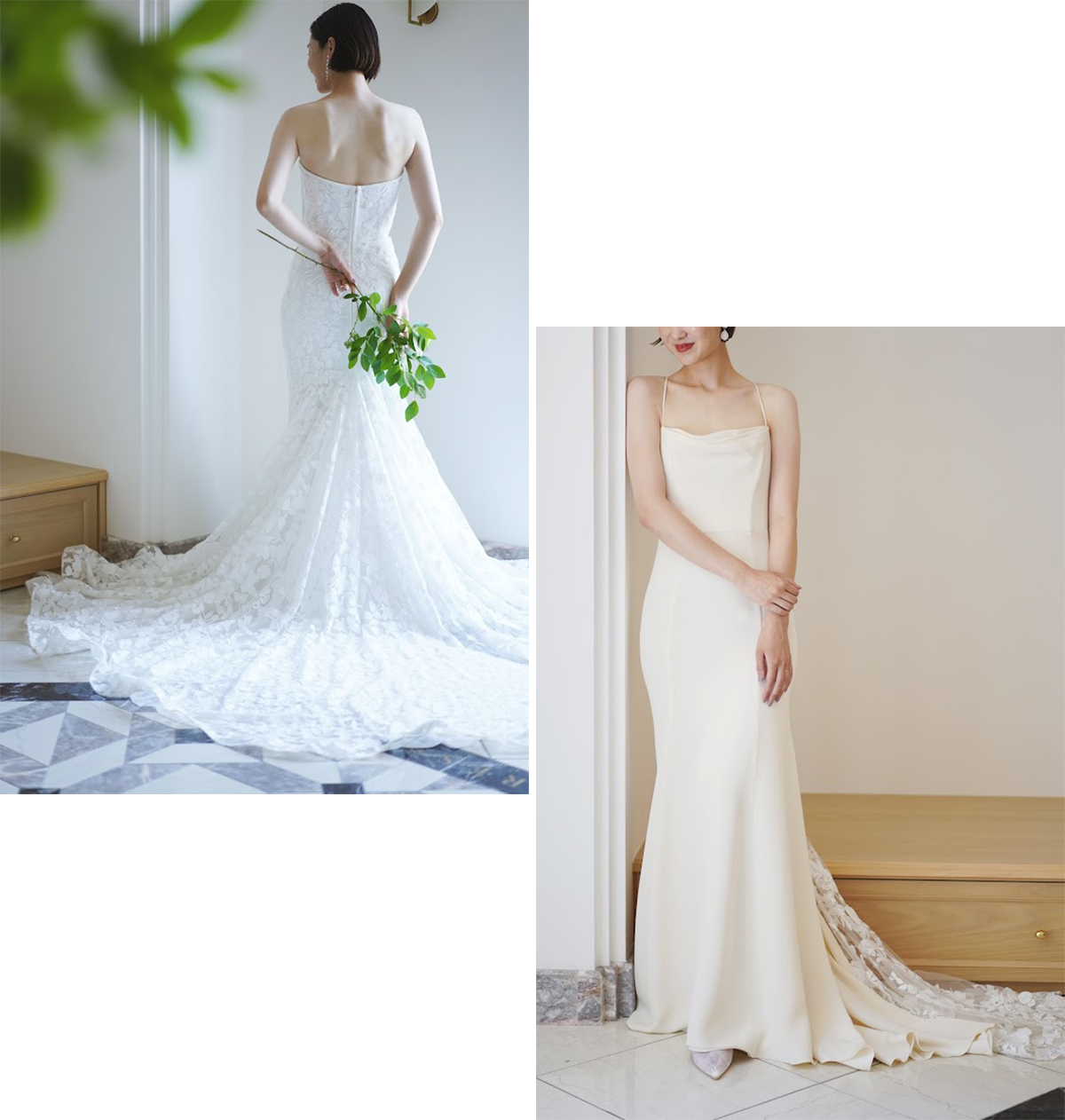 実は沖縄ではこれまで、ビーチや屋外での着用を前提としたドレスレンタルはあまりなく、ラグジュアリーなインポートドレスを気軽に借りられる環境は限られていた。そこでトリートは、トップメゾンを中心としたインポートドレスをセレクトし、リゾートウェディングにふさわしい、本物志向の新しい選択肢を提供する。結婚式は行わないけれど写真は残したい、結婚式の前撮りをしたい、式後にアニバーサリーフォトを撮りたい……。カップルそれぞれの多様なニーズに応えてくれるのが嬉しい。