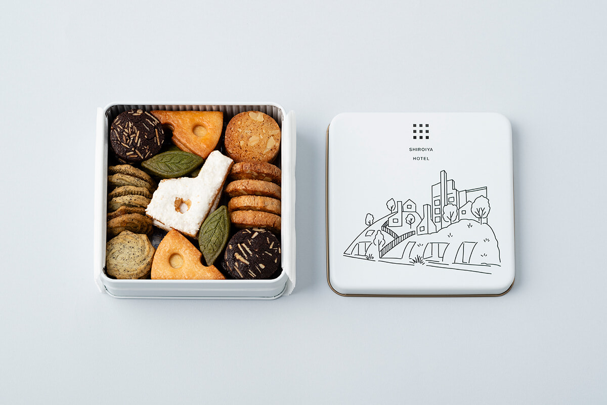 今回紹介するのは、今年の夏に森美術館で開催された藤本壮介氏の個展「藤本壮介の建築:原初・未来・森」をきっかけに誕生した、新たなクッキー缶。缶には藤本壮介氏デザインのホテルの姿が描かれており、クッキーそのものも、ホテルゆかりのモチーフや、群馬ならではの素材が。
