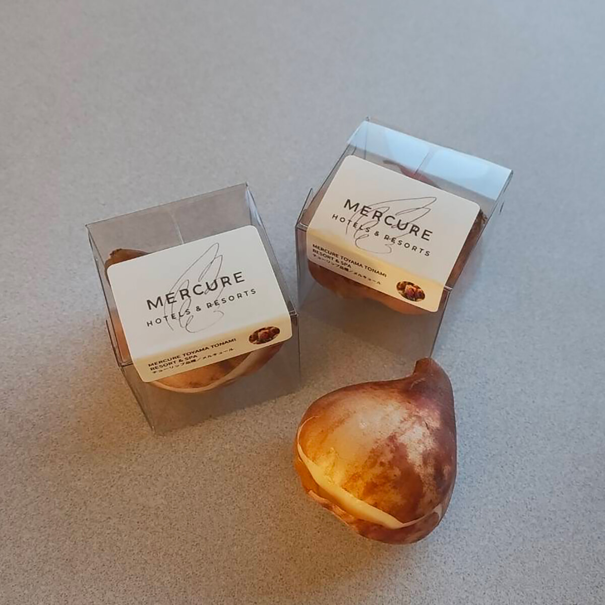 砺波市といえばチューリップで有名。そんな土地柄と、ホテルとの縁を感じるエピソードも。メルキュール富山砺波リゾート&スパが昨年4月にリブランドオープンした際、地元の方から「メルキュールという名のチューリップがあるんですよ」と情報が寄せられたそう。深い赤に黄色いフリンジのような花弁が特徴の品種で、地元でもその球根の取り扱いがあることが判明。限定数を仕入れ、ホテル宿泊のお客様へのお土産として渡しているそう。