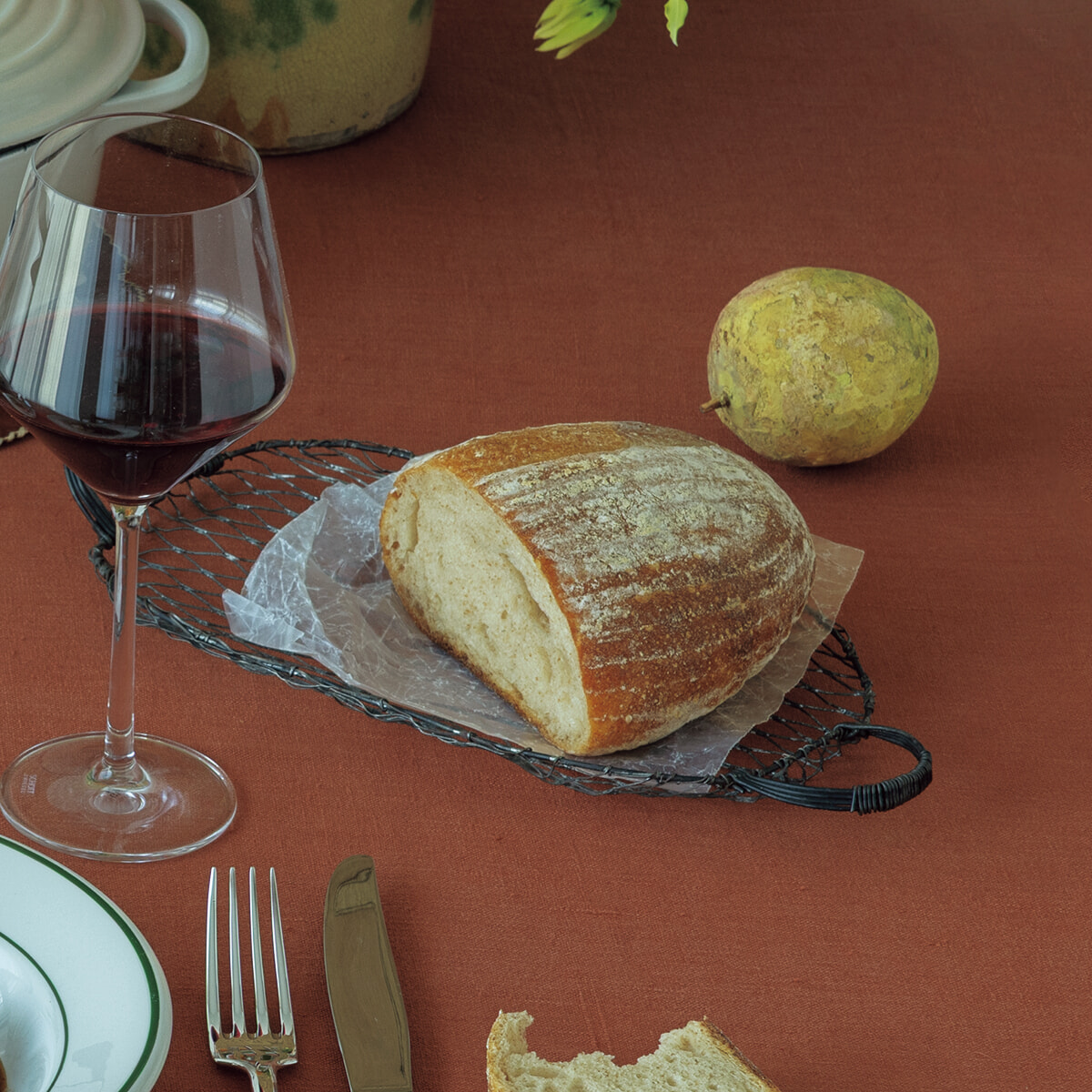 カットした瞬間から小麦の香りがたち上り、口に含むとじんわりと甘さが広がる。使用する小麦は北海道産のはるゆたか。自家製酵母のルヴァン種で生地を作り、高温で焼き込むことでクラスト(外皮)は香ばしく、クラム(中身)は水分を感じるしっとりとした仕上がりに。