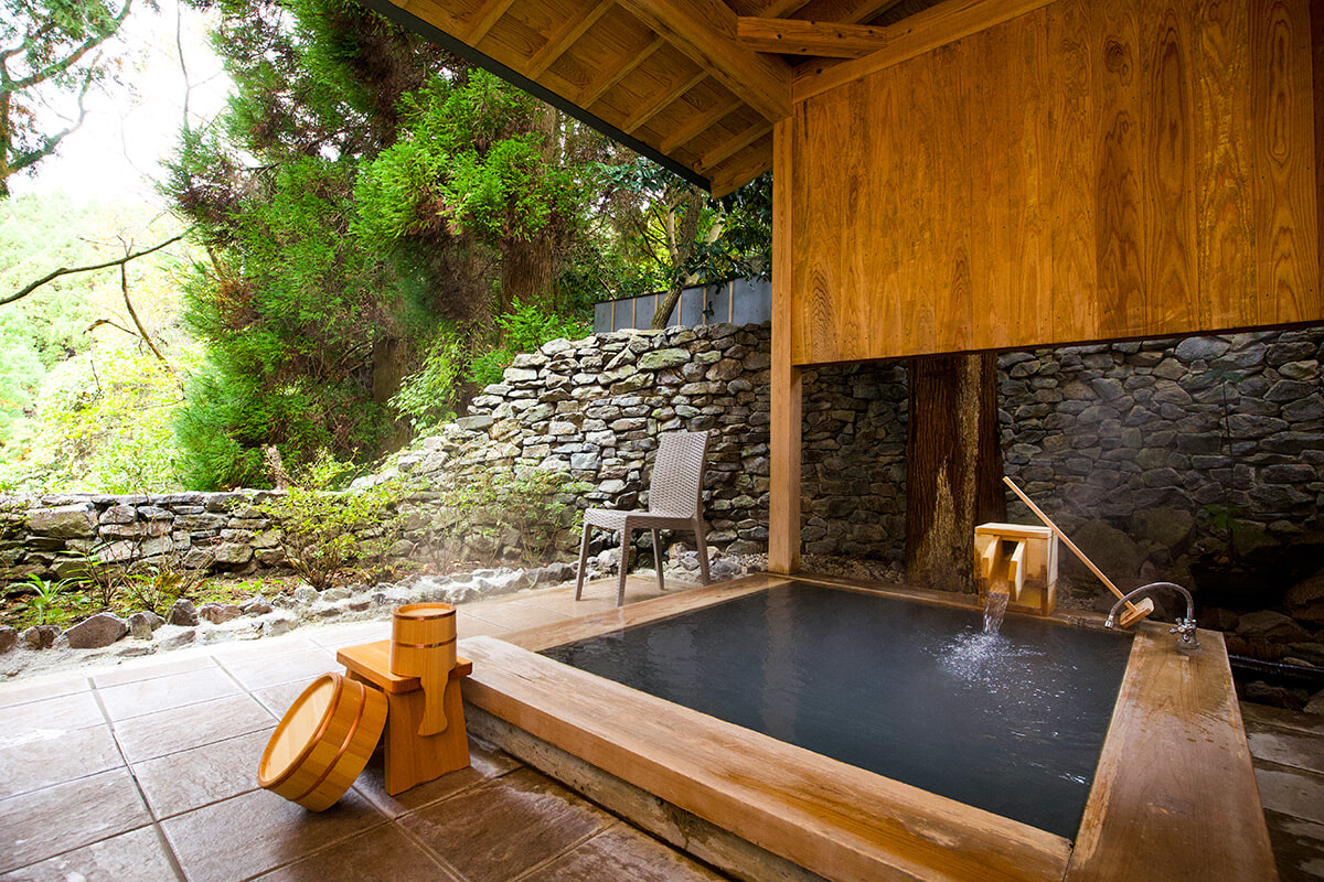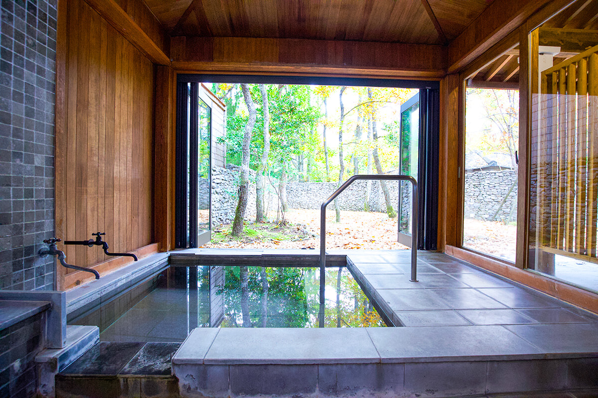 さらにすべての客室には専用露天風呂が併設され、地下から湧き出す美肌保湿効果成分をたっぷり含んだ柔らかなお湯を心ゆくまで満喫することができる。ヴィラスイートでは、部屋の前に広がるドッグランで楽しむ愛犬たちの姿を愛でながら、温泉に浸かるという贅沢な時間を過ごすことも。