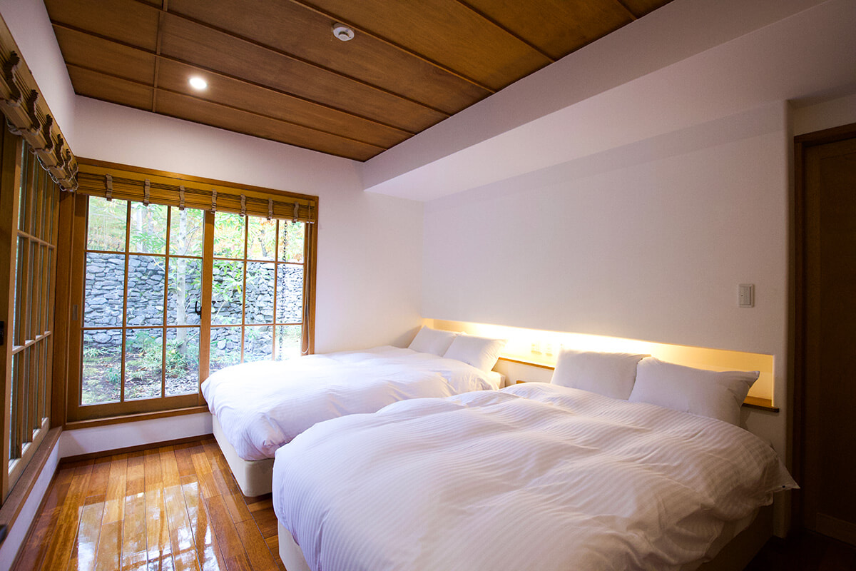 ヴィラタイプのお部屋は寝室が2つ。2台のベッドが並ぶ部屋と、畳敷の和室が用意されている。(お部屋によって仕様が異なります。)