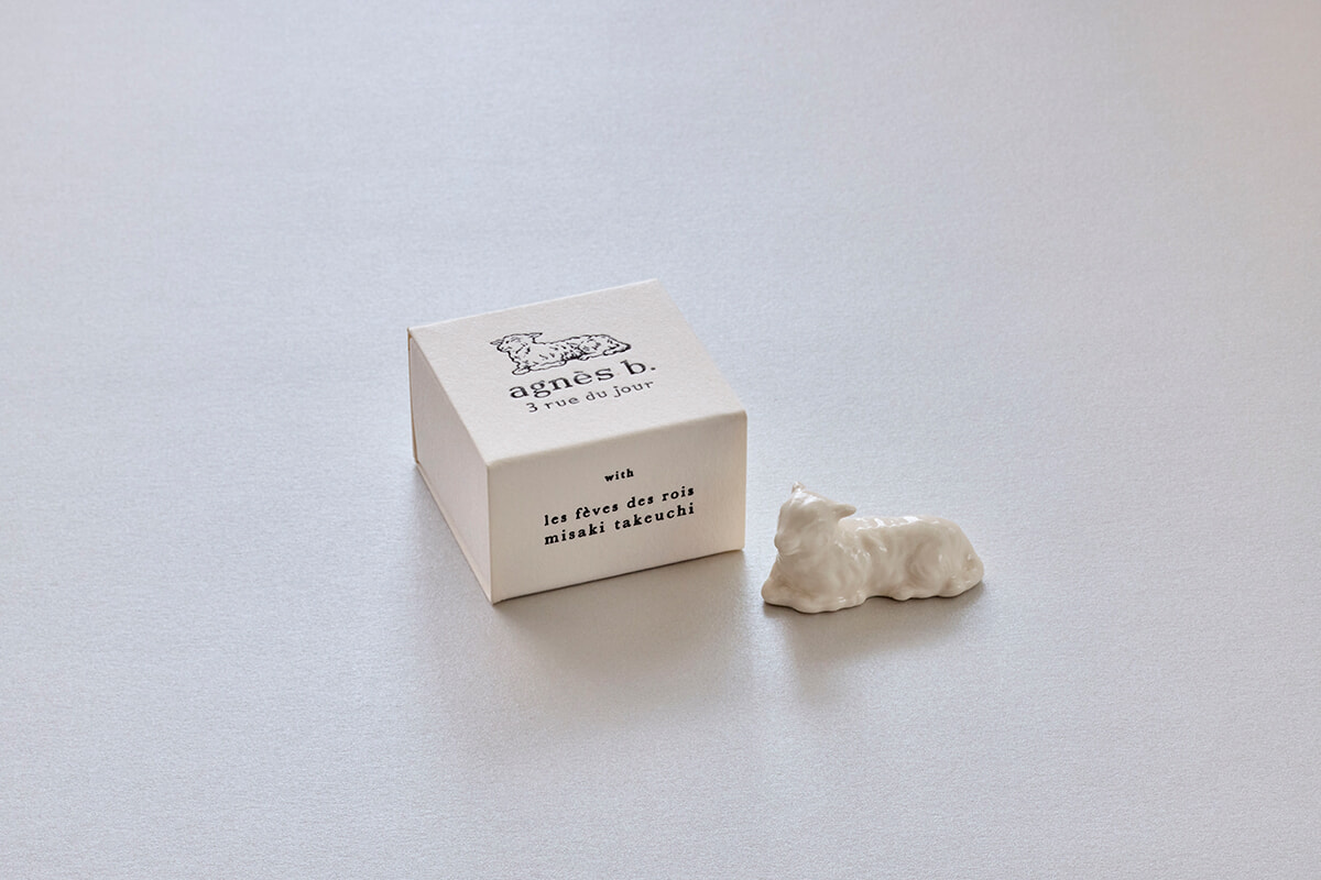 アニエスベーでは「王様」(Rois/ロワ)だけでなく「女王様」(Reines/レーヌ)」も登場し、「ガレット・デ・ロワ & デ・レーヌ」として、フェーヴ作家・misaki takeuchiさんが制作した子羊のフェーヴと紙製クラウンとセットで販売。