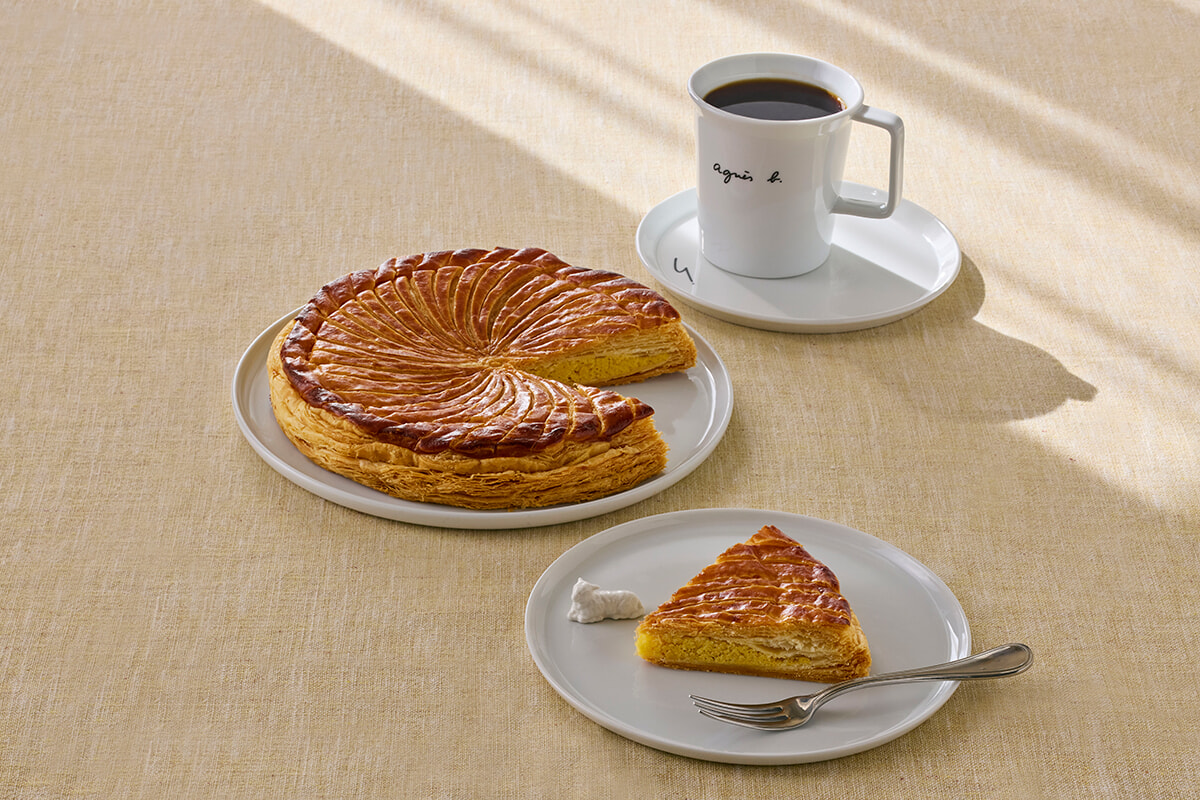 公式サイトでは「ガレット・デ・ロワ & デ・レーヌ」の予約が受付中。2026年の幕開けに、運試し! ぜひお家やアニエスべーのカフェで味わってみて。