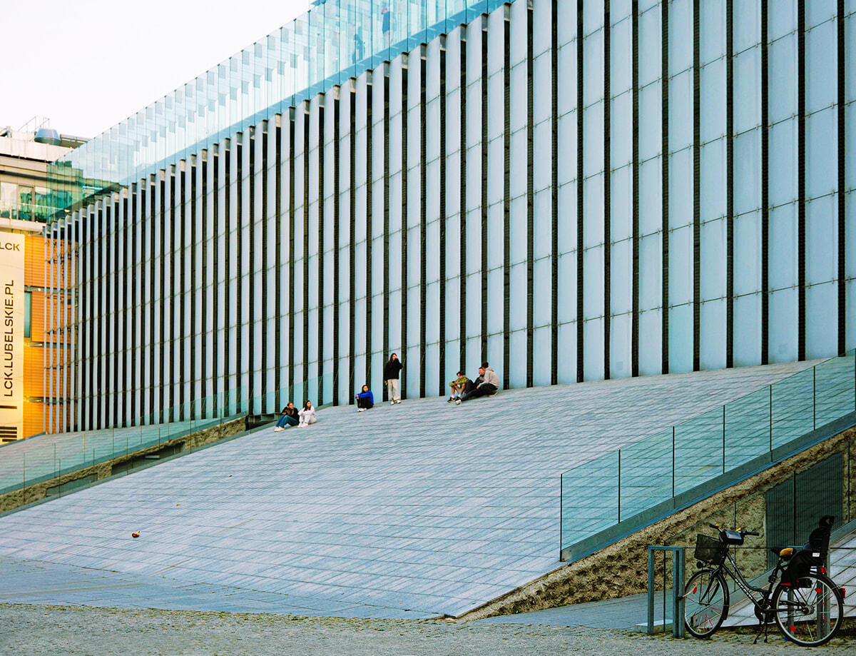 ルブリンはパステルカラーの建築物が立ち並ぶ素敵な旧市街エリアの街並みと、モダンな建築物のある市街地の整然とした印象が好対照だ。夕暮れ間近の文化交流センター(Centre for the Meeting of Cultures in Lublin)には、若者が集う。中には複数のスクリーンを持つ映画館、劇場、展示スペース、レストランがあり、これが市の持つ施設だと聞き、街の文化度の高さを再確認した。広い屋上庭園には土着の植物も。