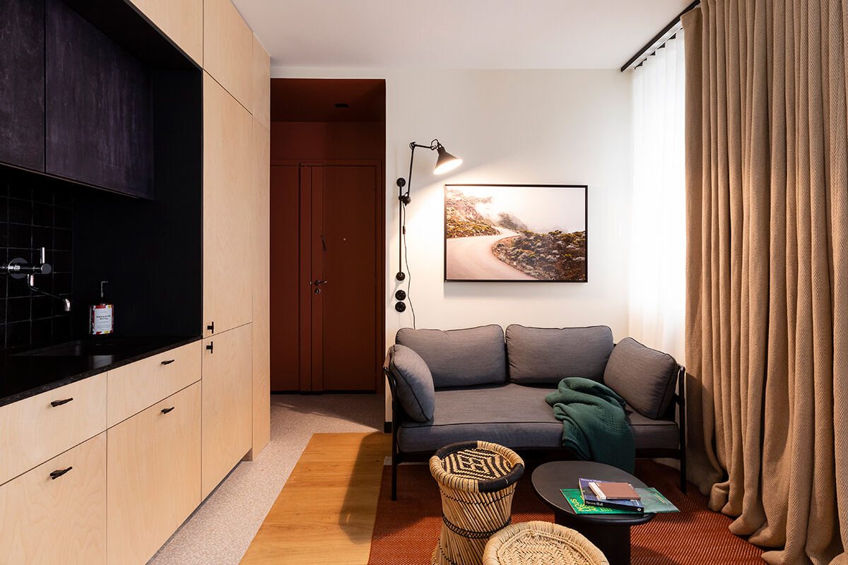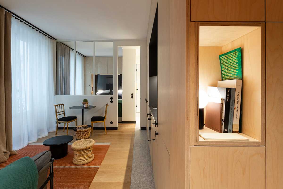 上質な素材、丁寧なディテール、繊細な色使い、巧みな工夫、そしてエレガンスへの追求ーこの25㎡は、最適化と洗練を見事に両立している。photography: Alexis Paoli