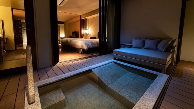 各部屋にはプライベートを満喫できる露天風呂。photography: 一休