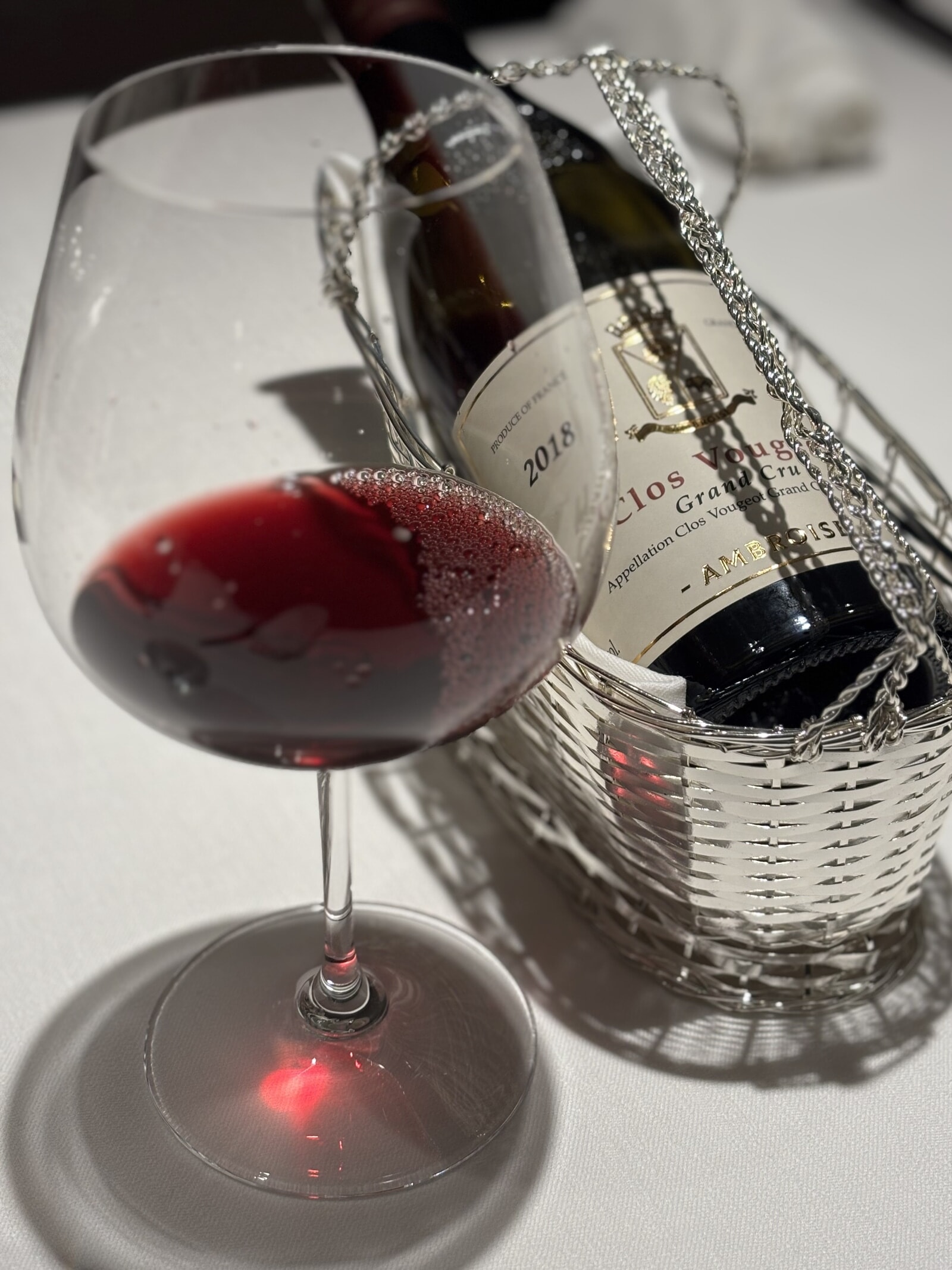 メインを前に登場したのは、ブルゴーニュの生産者ベルトラン・アンブロワーズによる「クロ・ヴージョ グラン・クリュ 2018」。2018年のブルゴーニュは暑く乾燥し、果実味が豊かと言われるヴィンテージだ。