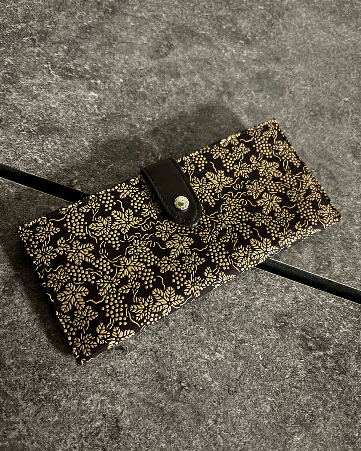 いい大人なんだから、と財布を探すことに。歌舞伎好きで和小物好きな私、印伝がいいなと探していたら出合ってしまいました。葡萄柄。フィガロワインクラブも立ち上げから3年目に突入、今年も実り多き年でありますように。