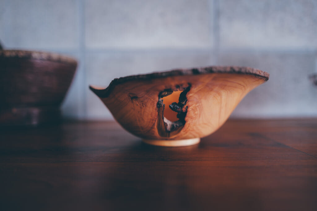 オーナーである木工作家 藤本健さんの美しい作品もとても馴染んでる。