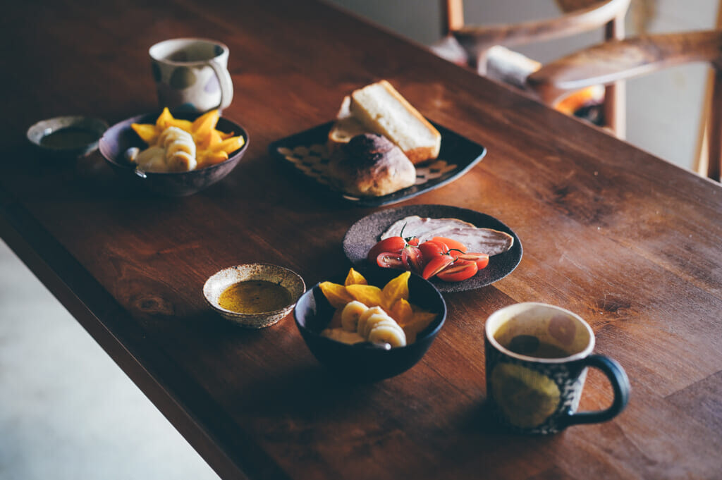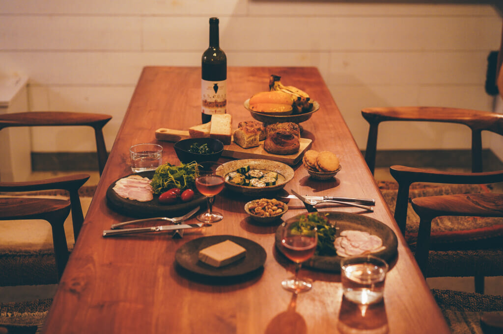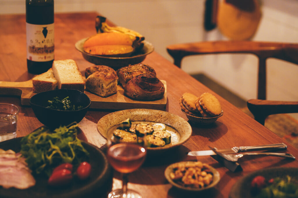 滞在2日目の夜は地産の野菜やフルーツを市場で選び、パンは宗像堂、首里のパポテペパンでナチュラルワインと金城商店のシャルキュトリーを購入し、ゆっくりディナー。