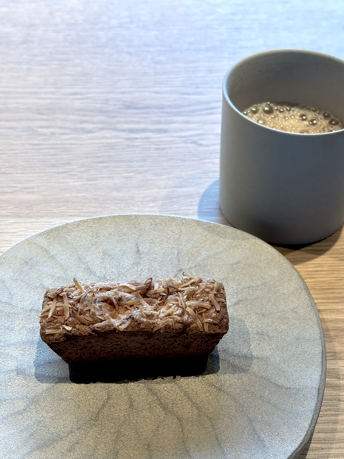 華麗な手つきでベンジャミンが仕上げた「AU LAIT(オ ラテ)」は、ミルクの甘やかさが際立つ、まさに癒やしの味。フィナンシェのココナッツのコクともマッチし、3時のおやつに毎日いただきたいほど。子ども心に返ったところで、最後の一杯が登場。