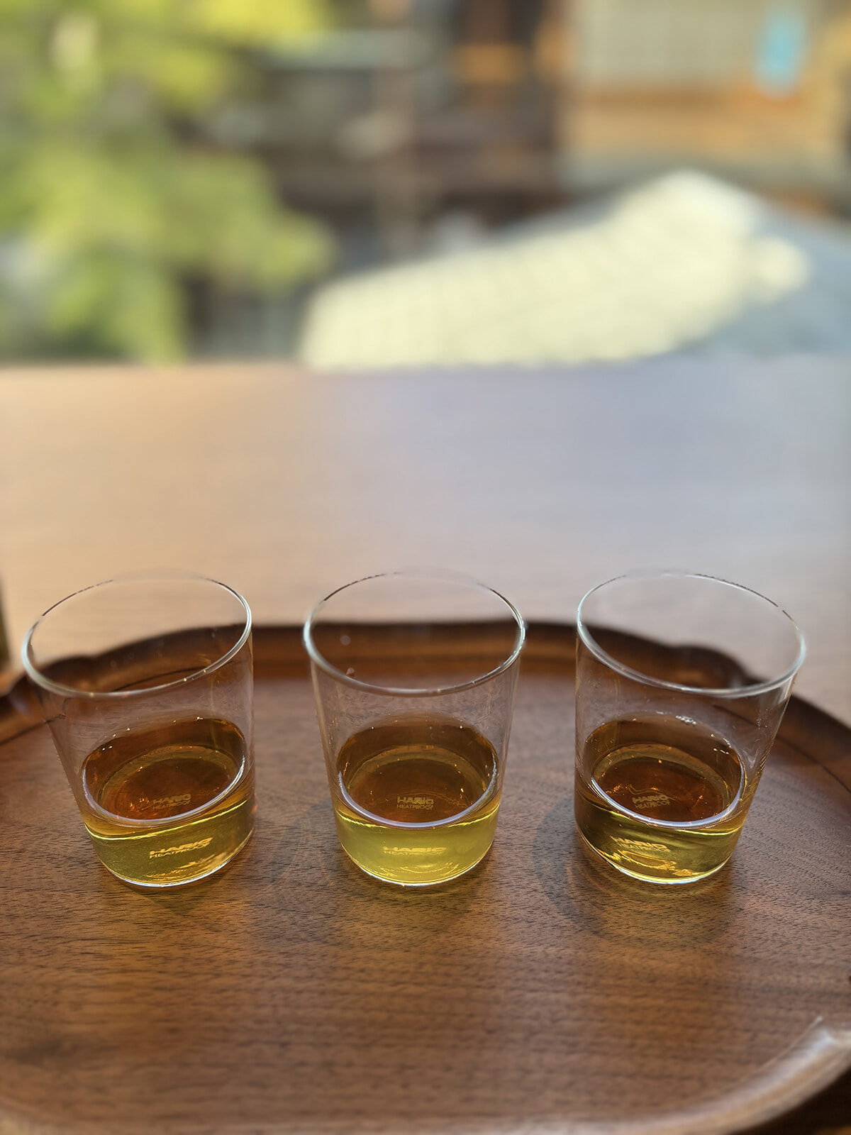 最初の一杯(3杯)は、”コーヒーノキ”の葉、花、果実をインフューズしたアイスティー。コーヒーの葉だけれど、どことなく柿の葉茶のようなニュアンスがある。一方、花を使ったものは、ハチミツのような香り。