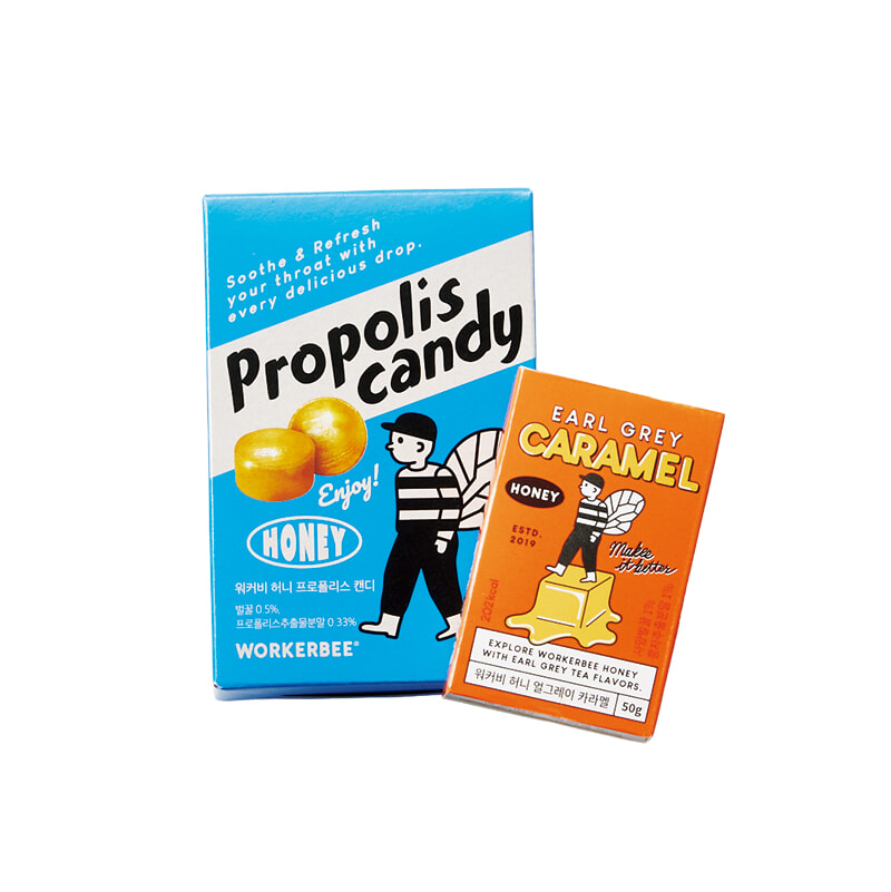 思わずパケ買いしたくなる洒落感あるパッケージ。不快な喉を爽快にするプロポリスキャンディと、アールグレイはちみつのキャラメル。