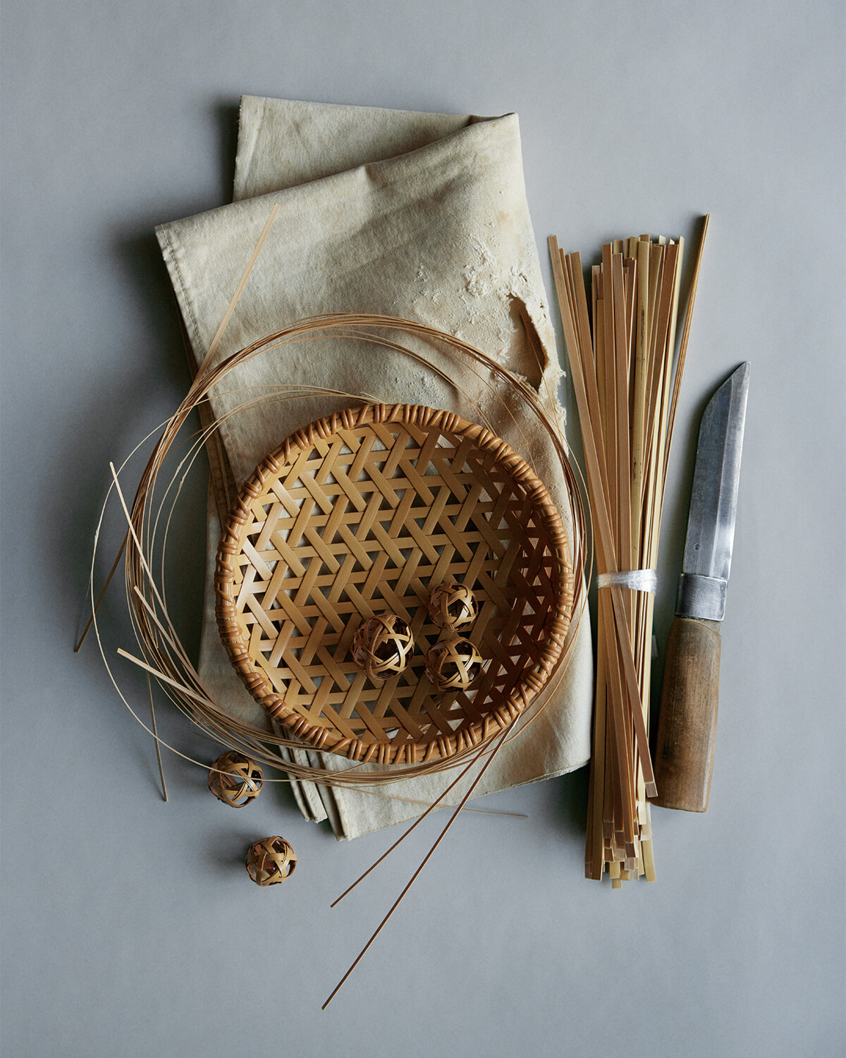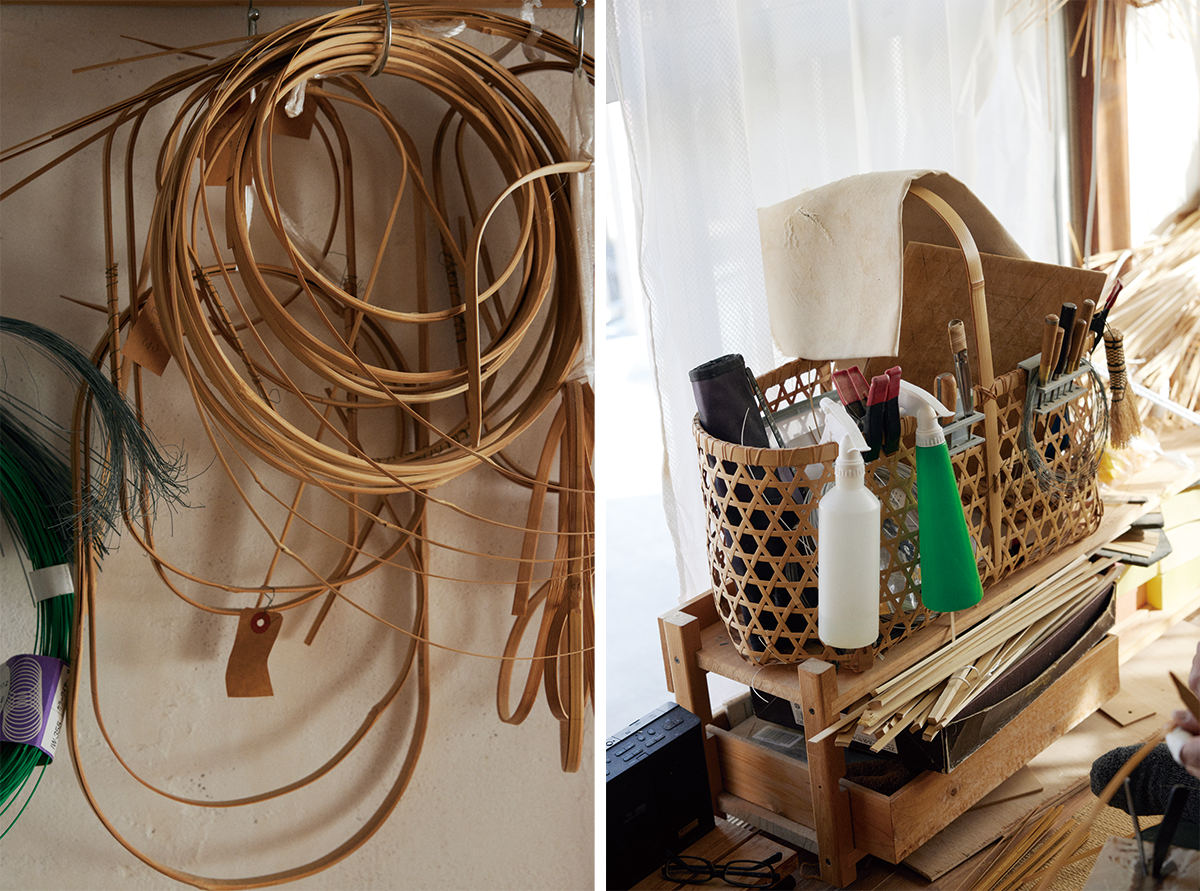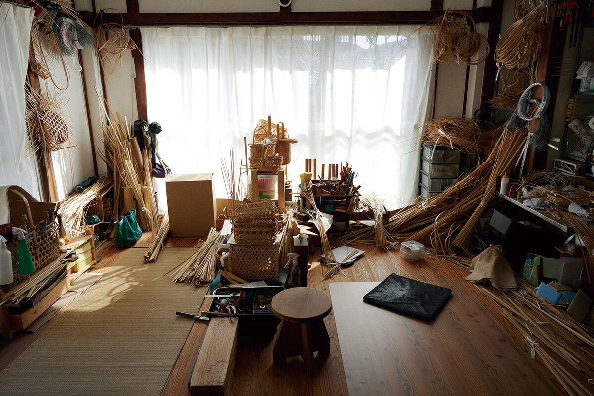 会場では、一本の竹が細い線になり、面になり、やがて立体へと立ち上がっていく工程を、技法や道具とともに紹介。実用性を備えながら、空間を彩るインテリアとしても機能する竹細工の魅力を堪能することができる。