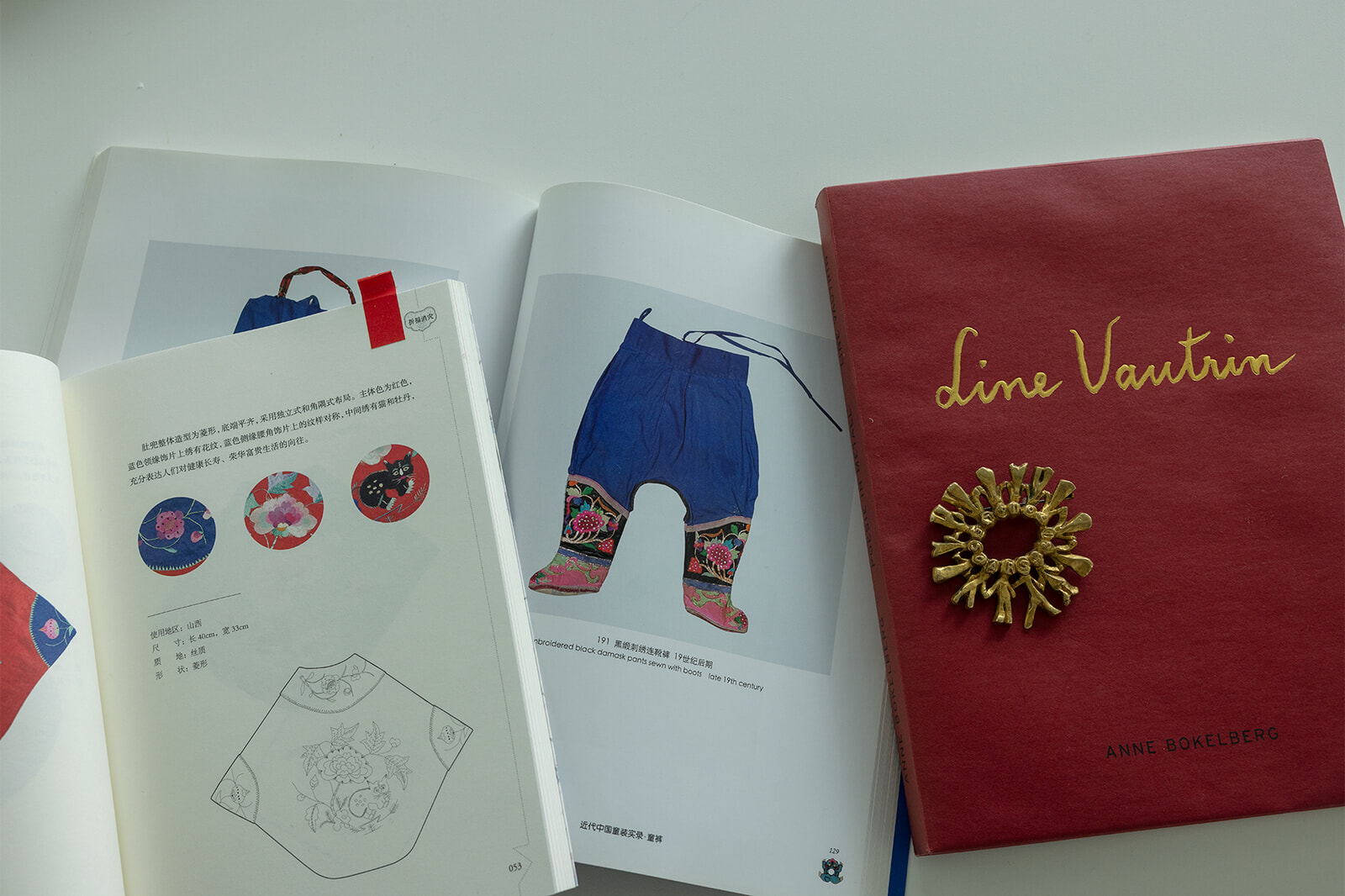 昔の中国の子ども服の本やリーン・ヴォートランの作品&デザイン集は、三國のインスピレーション源の一部。