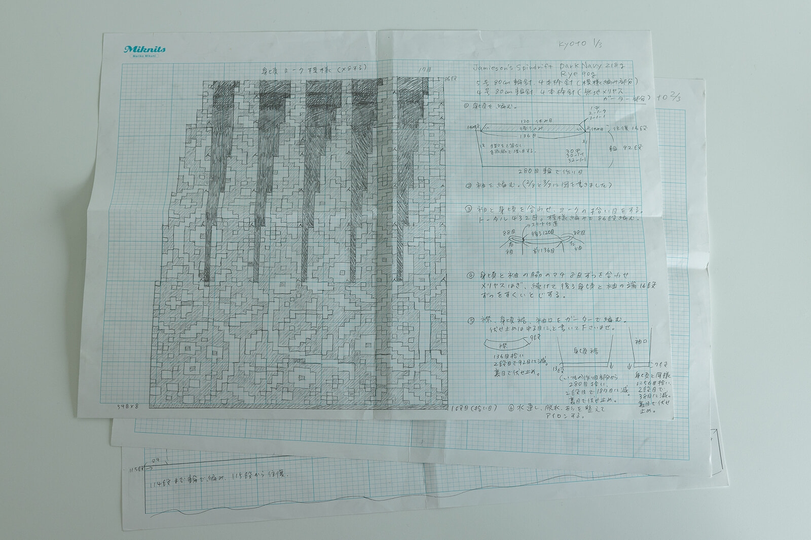 それを三國は「晴れがましいうれしさ!」と表現する。ひと目ずつ編むことでしか前に進まない編み物に近道はなく、利便性を重視した”タイパ”やAIの現代と逆行しているかもしれない。だが「時間をかけて編むことは、旅に似ているかも。疲れたから今日はここまでだけど、明日はこんな局面が待っているかも! と思うと、明日が来るのが楽しみで。編むというプロジェクトが生活の中にあることは未来を考えることに繋がるんです」と教えてくれた。