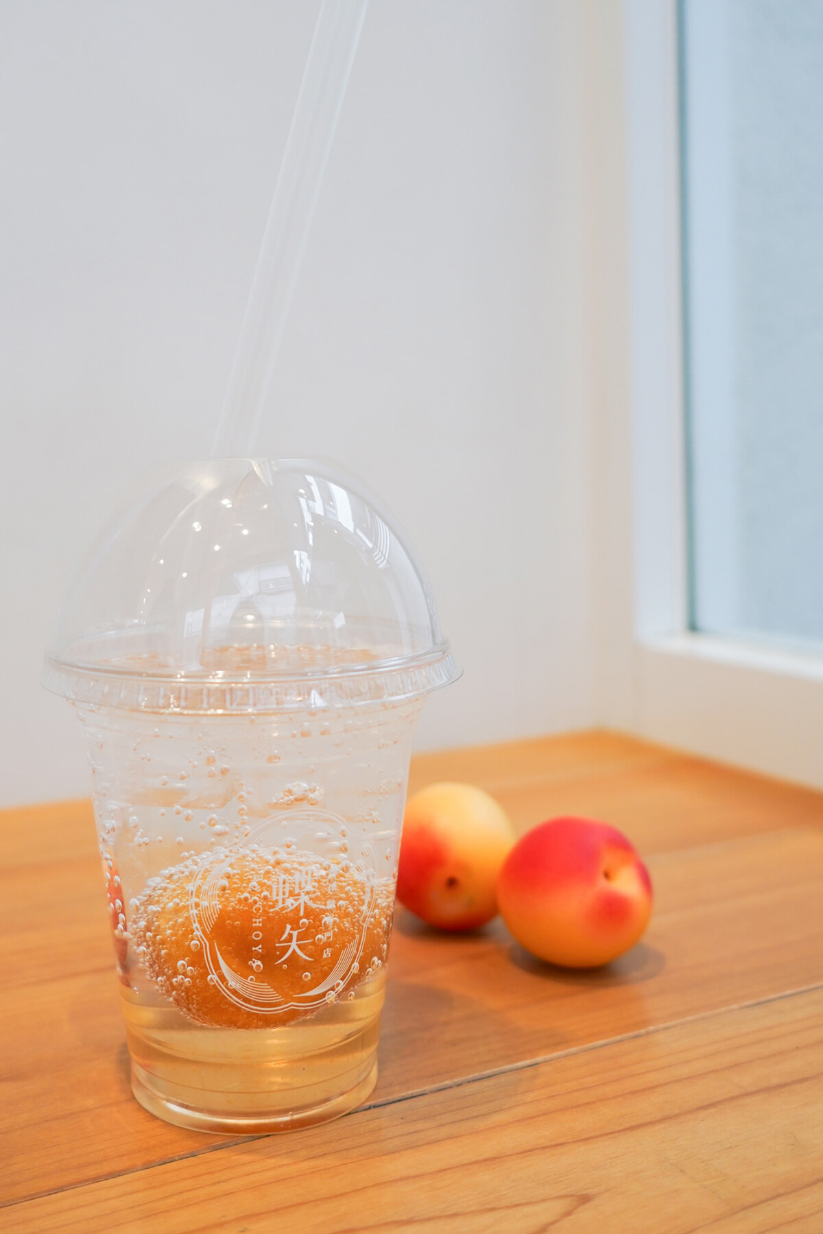 要予約の梅体験のほかにテイクアウトコーナーもあり、完熟南高の梅シロップを使ったオリジナルドリンクが楽しめる。定番人気のソーダ割り¥570。