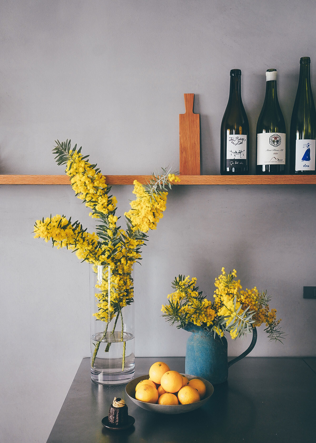 さっそく坂の上にミモザを飾った。