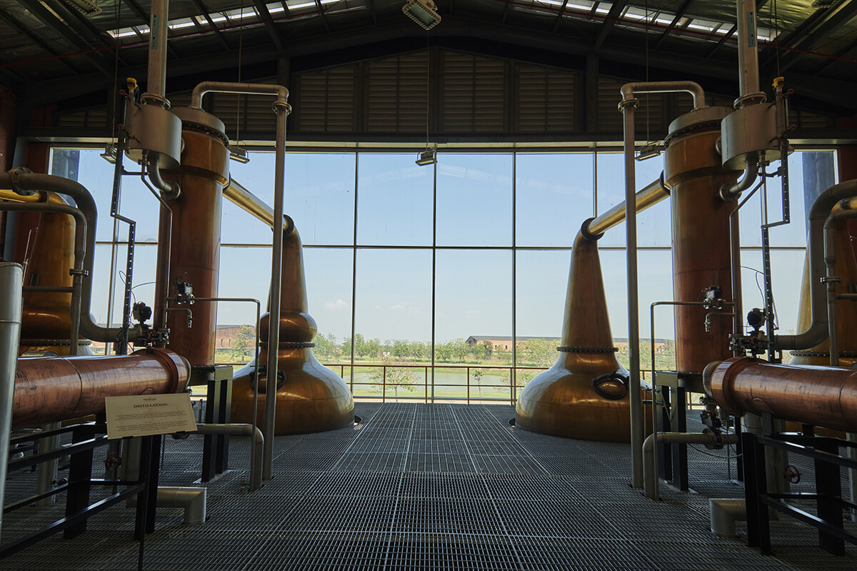 PRAKAAN蒸溜所は2018年、タイで最大の飲料メーカー、タイビバレッジ社によってこの街に設立された。”タイのスピリッツ”というと米や糖蜜を原料とする「メコンウイスキー」やこれをベースとするスパイスドラムが知られているが、これまで本格的なシングルモルトウイスキーは造られてこなかった。クラフトウイスキー・ブームの追い風を受けて設立されたPRAKAAN蒸溜所が目指すのは、スコットランドの伝統的な製法を取り入れつつ、高温多湿の熱帯気候を逆手にとった、世界のマーケットを見据えた本格的なシングルモルトウイスキーである。
