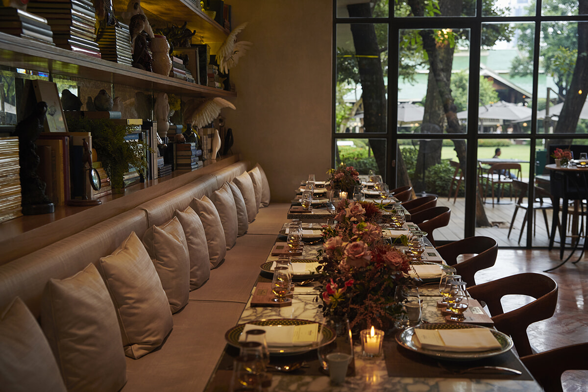 そんなポールさんが特別に開いてくれたのが、PRAKAANと伝統的なタイ料理のペアリングディナーだ。舞台となったのは、バンコク中心部のナイラート公園内にあるレストラン「マ・メゾン」。「トリプラ」シリーズの3種のボトルが飾られたレストランで、ポールさんと「マ・メゾン」のシェフのコラボレーションによる、この日限りのスペシャルなディナーが振る舞われた。