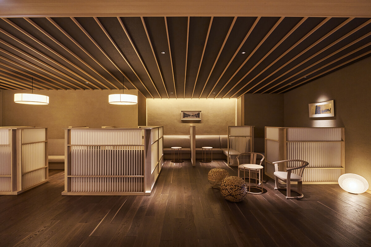 「ふふ 東京 銀座」の特徴は、都心とは思えない静寂感に満ちた館内造りとともに、土地の歴史に敬意を払い、文化や伝統を未来に継承することを謳っています。ここ銀座でも同様に「ふふ」の哲学が貫かれ、江戸から東京へ、そして未来へと繋がる伝統を巧みな工芸品やアートワーク、受け継がれる職人の手仕事などで表現しています。1階のエントランスを飾る「竹垣」や「瓦土塀」もそのひとつ、館内にも随所にアート作品が鏤められています。