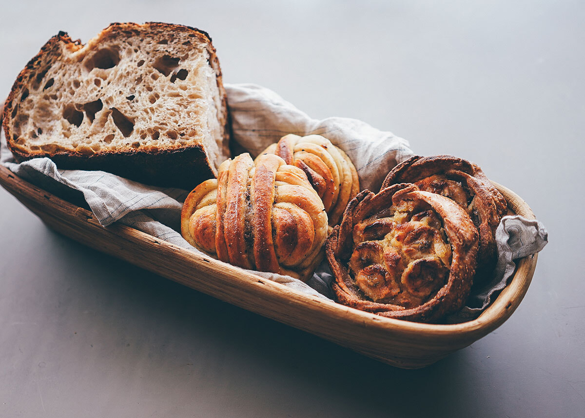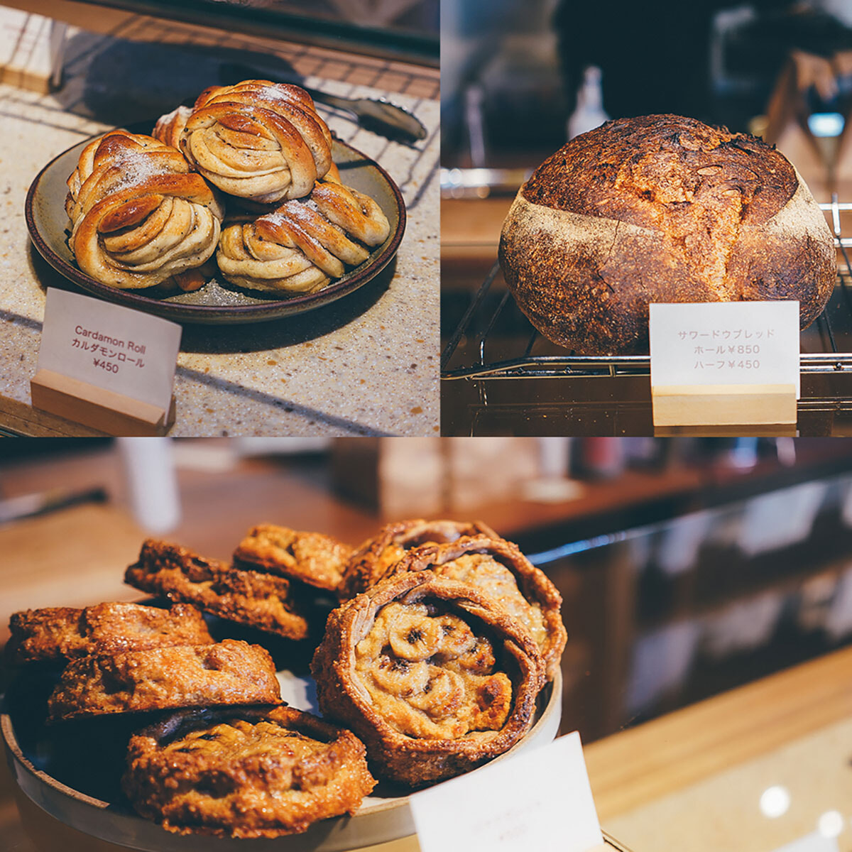 左からカンパーニュ、カルダモンロール、バナナガレット。