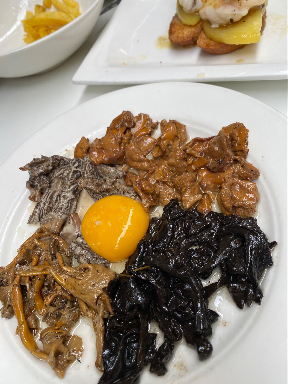 ② Gambara(サンセバスチャン)|きのこのソテー卵黄乗せ&マテ貝のソテー