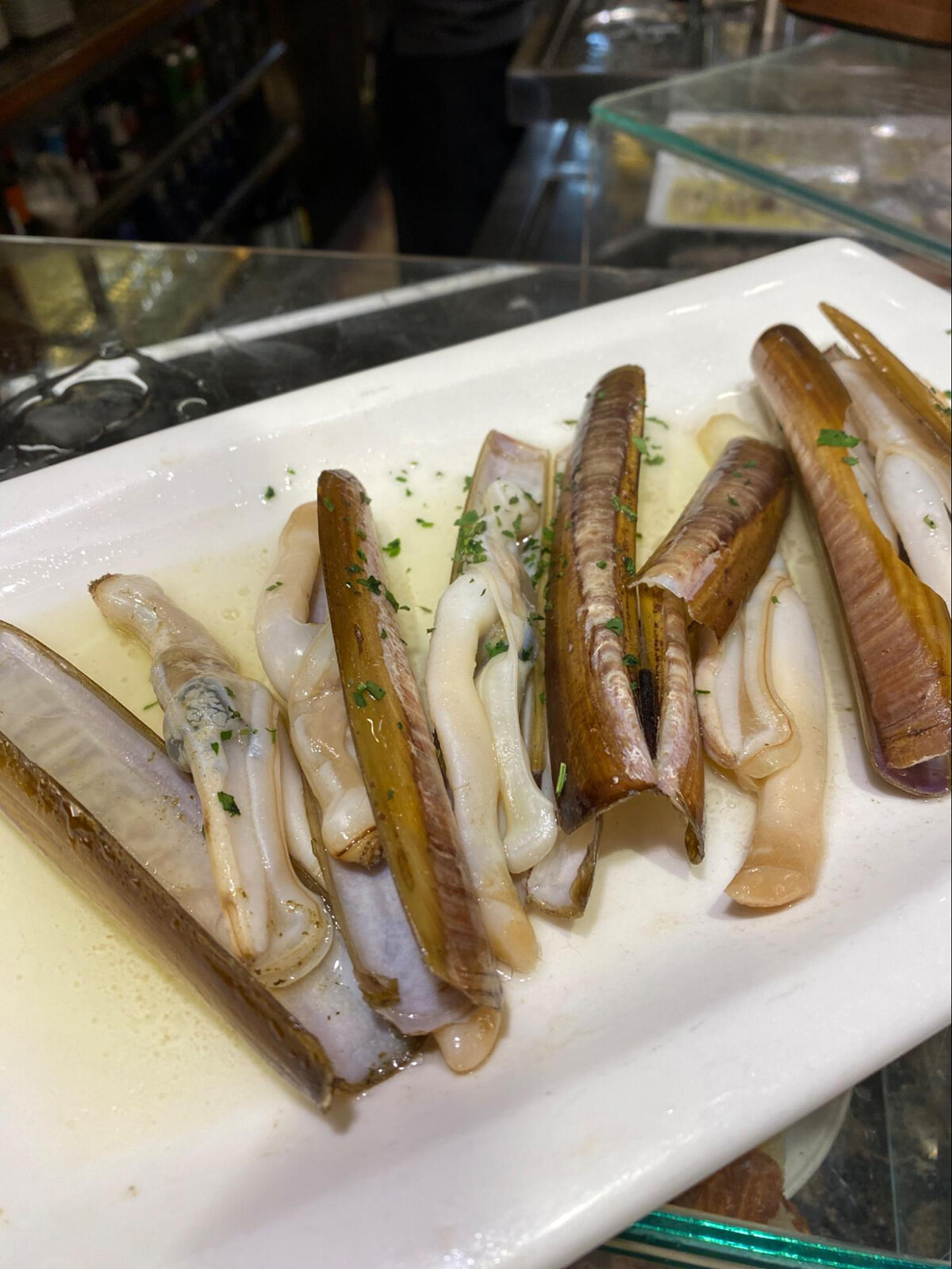 さらに大好きなマテ貝を頬張る人を横目で見て、すぐさまオーダー。新鮮なマテ貝をニンニクとオリーブオイルでさっと炒めただけの一皿なのに、貝らしからぬ、しゃきしゃきした食感に驚き。素材の良さを前面に押し出して余計な味付けを施さない、バスクの食の美学を思う存分楽しめるメニューが並ぶ一軒です。